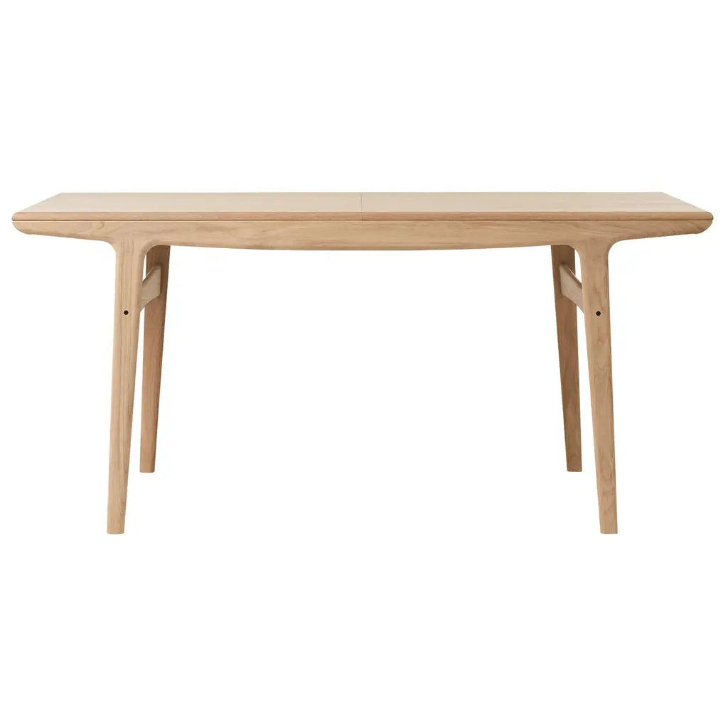 Evermore dining table oak 190 by Warm NordicDimensions: D 190 x W 95 x H 74 cmMaterial: White oiled solid oak and veneer.Weight: 51 kgAlso available in different colours and dimensions.A simple, timeless designer table created in the 1950s by the acclaimed Danish furniture designer, Arne Hovmand-Olsen. Evermore is a classic beauty that transports the craftsmanship and aesthetics of Danish modernism into the contemporary dining room or sociable kitchen. The lines of the design are typical of the era and characteristic of Arne Hovmand-Olsen, who let the beautiful wood play the leading role. Evermore is manufactured in teak, walnut and oak of the highest quality and is available in two sizes. One of the Evermore's features is space for the storage of leaves in the actual table, so there is the option of more room around the table for the greatest possible flexibility. Choose from different classic surface treatments and colour expressions from Warm Nordic's exclusive universe.Warm Nordic is an ambitious design brand anchored in Nordic design history and with a timeless, aesthetic style that inspires you to appreciate the little things in life. The company is the result of several years’ intense work on developing a new design brand with design history, quality and personality at its core. Warm Nordic boasts a colourful and charming universe of furniture, lamps and accessories full of personality. Our designs encapsulate the Nordic spirit, which in its essence is timeless, inclusive and warm.