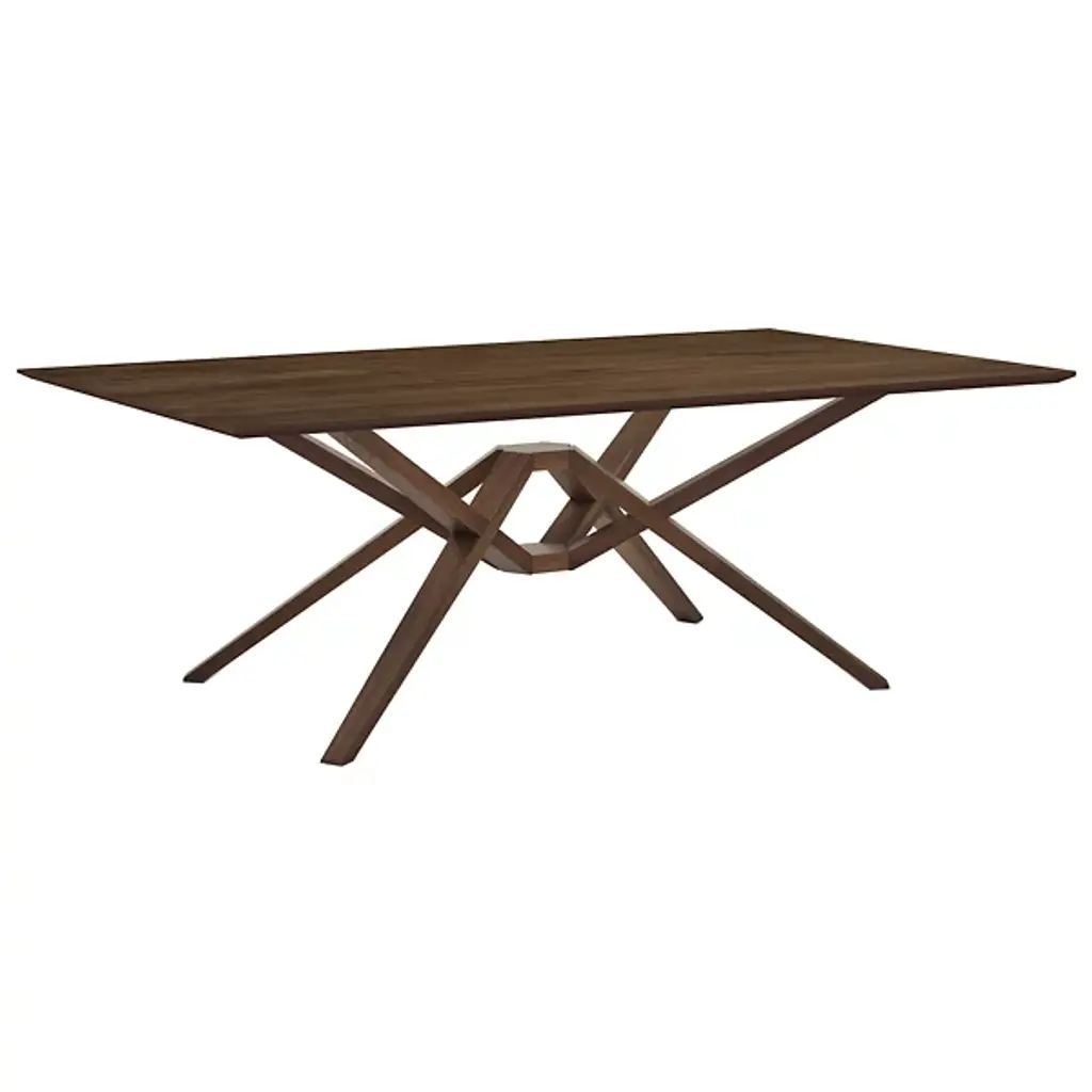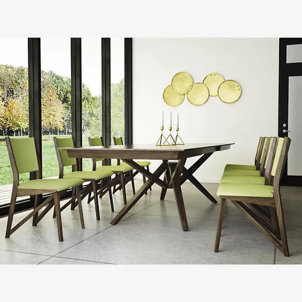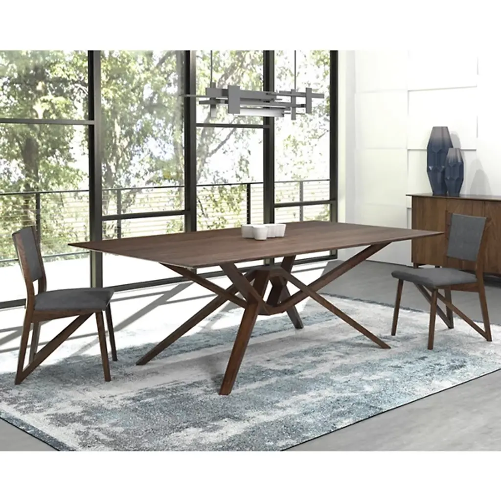 An imposing table that’s impressive at every angle. The Copeland Furniture Exeter Fixed Top Table exudes elegance and innovation throughout its detailed frame and surface. Both the legs and tabletop are made of gorgeous, durable Wood, pairing a natural beauty with the piece’s intriguing and detailed structure. Identical sections of the base intersect between the floor and underside of the table, creating a symmetrical support that’s just as impressive as the smooth surface. The table gives you a nice mix of traditional style and modern expression, making it an excellent choice for contemporary dining rooms looking for a hint of a classic aesthetic.