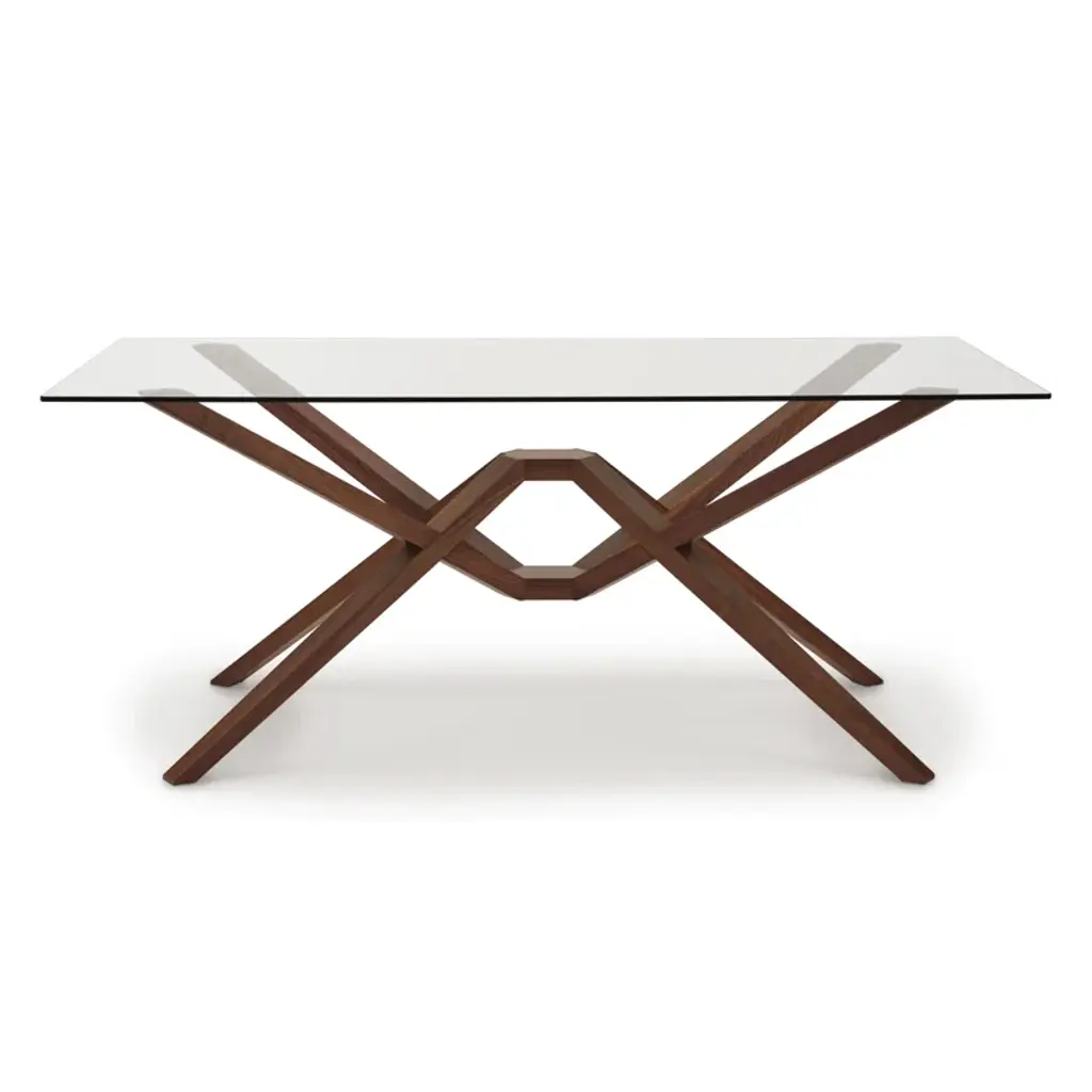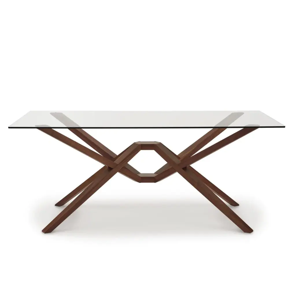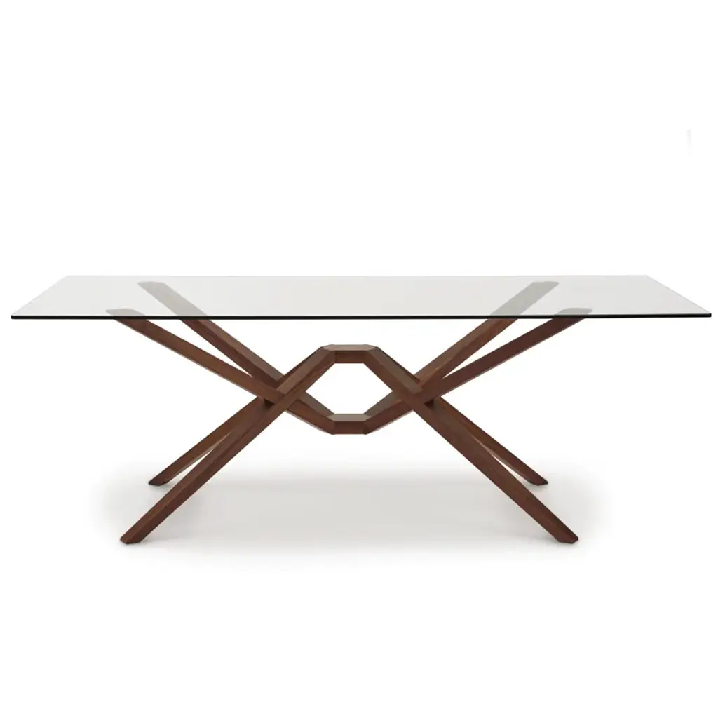 Exeter dining is a striking marriage of isometric tension and modern design. Exeter tables are available in a range of glass top sizes highlighting the unique geometry of the table base.