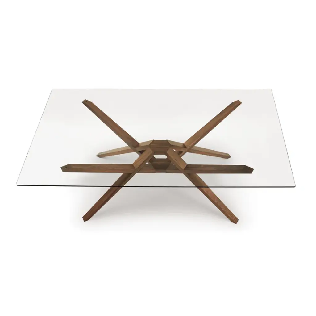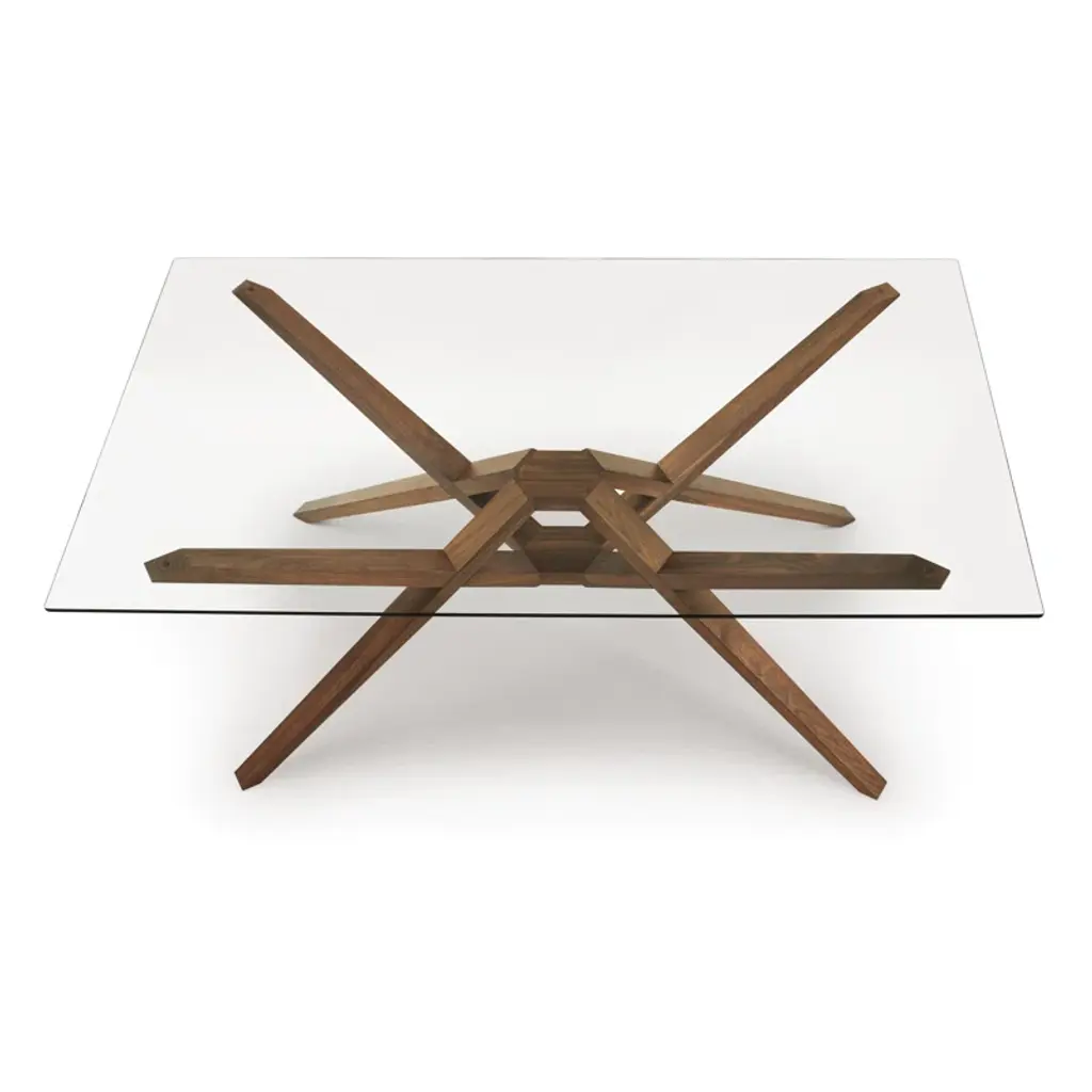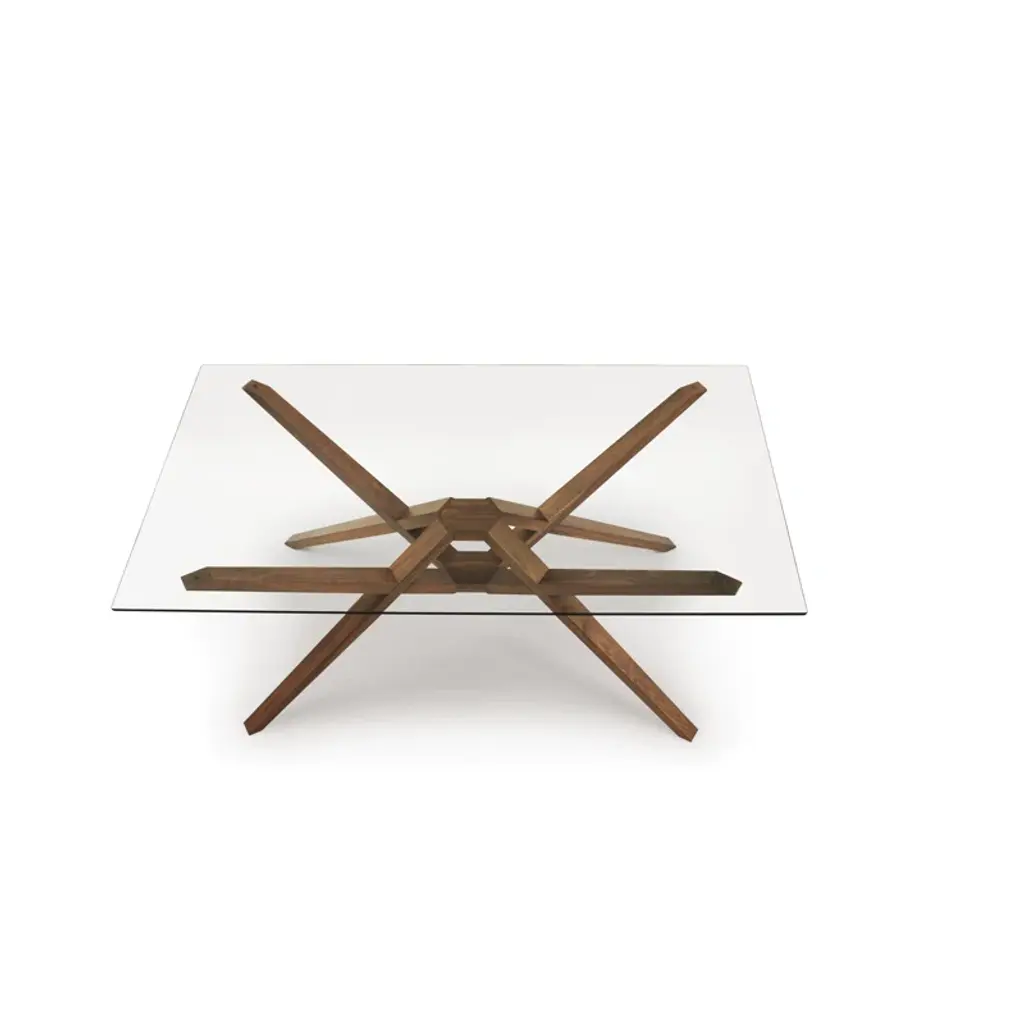 Exeter dining is a striking marriage of isometric tension and modern design. Exeter tables are available in a range of glass top sizes highlighting the unique geometry of the table base.