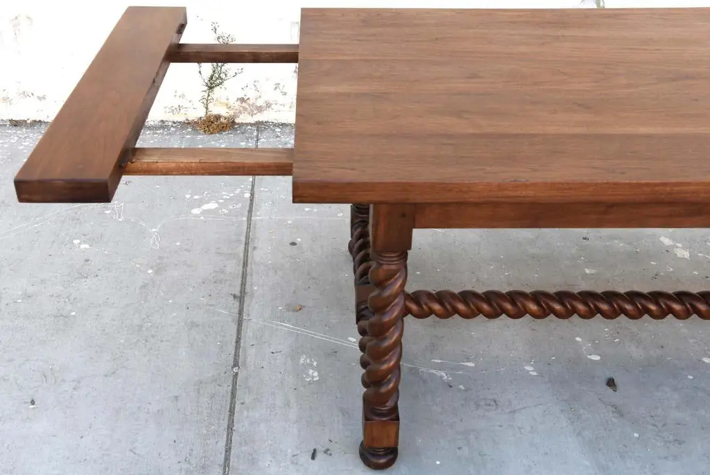 Expandable Barley Twist Dining Table Made From Walnut By Petersen Antiques