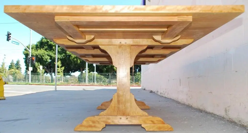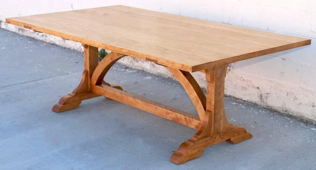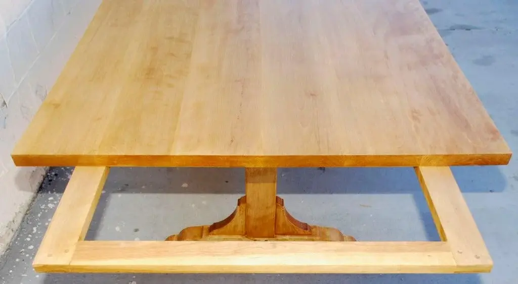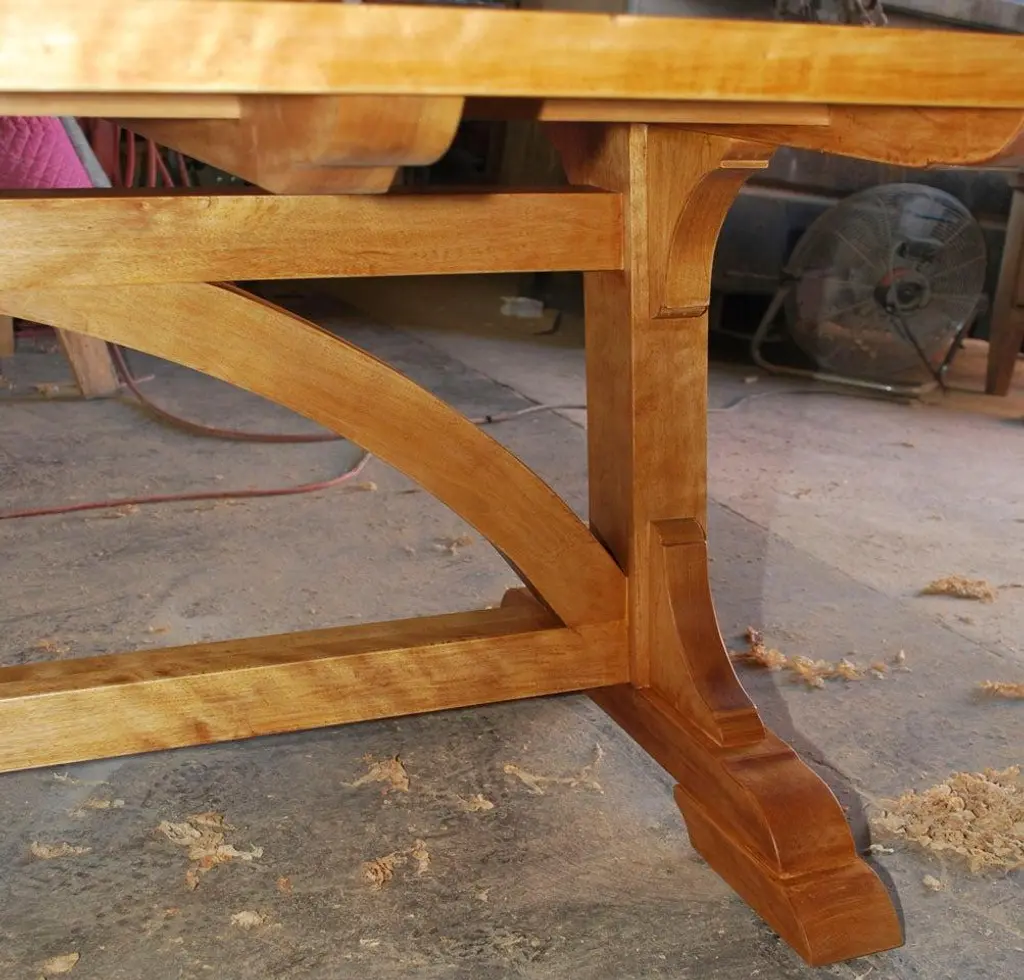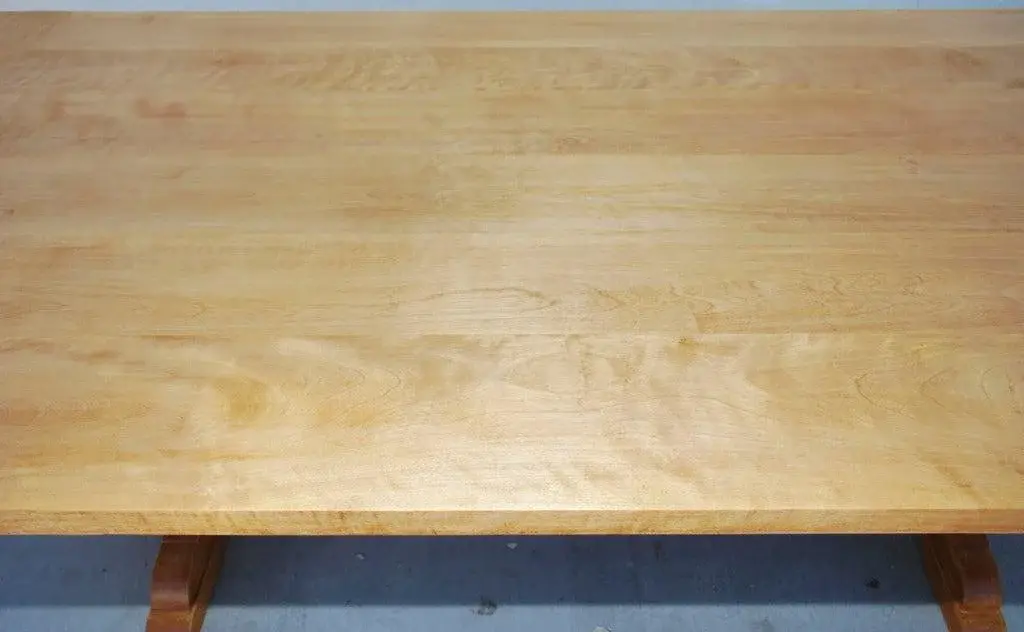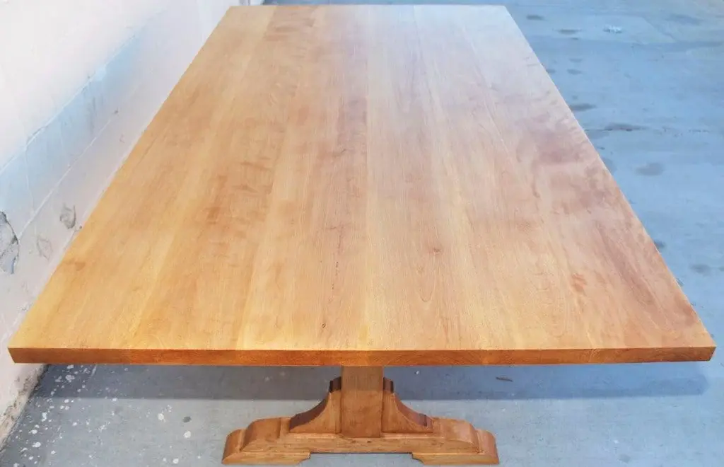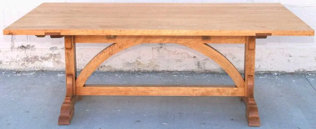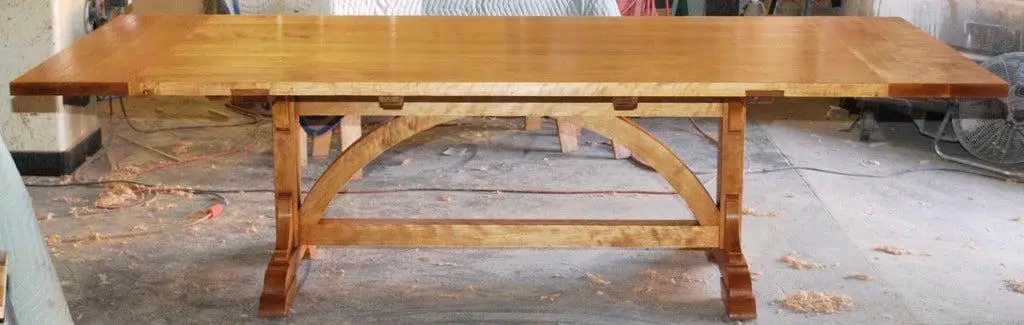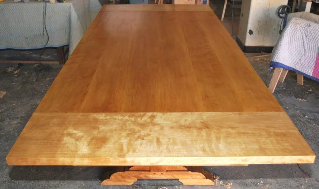 This table is inspired by a Swedish country table from the mid-19th century. As it is shown here, it is made in flame birch, hand planed and assembled with two extension leaves (90"x 54" expanding to 120"x 54"). 9-10 weeks
