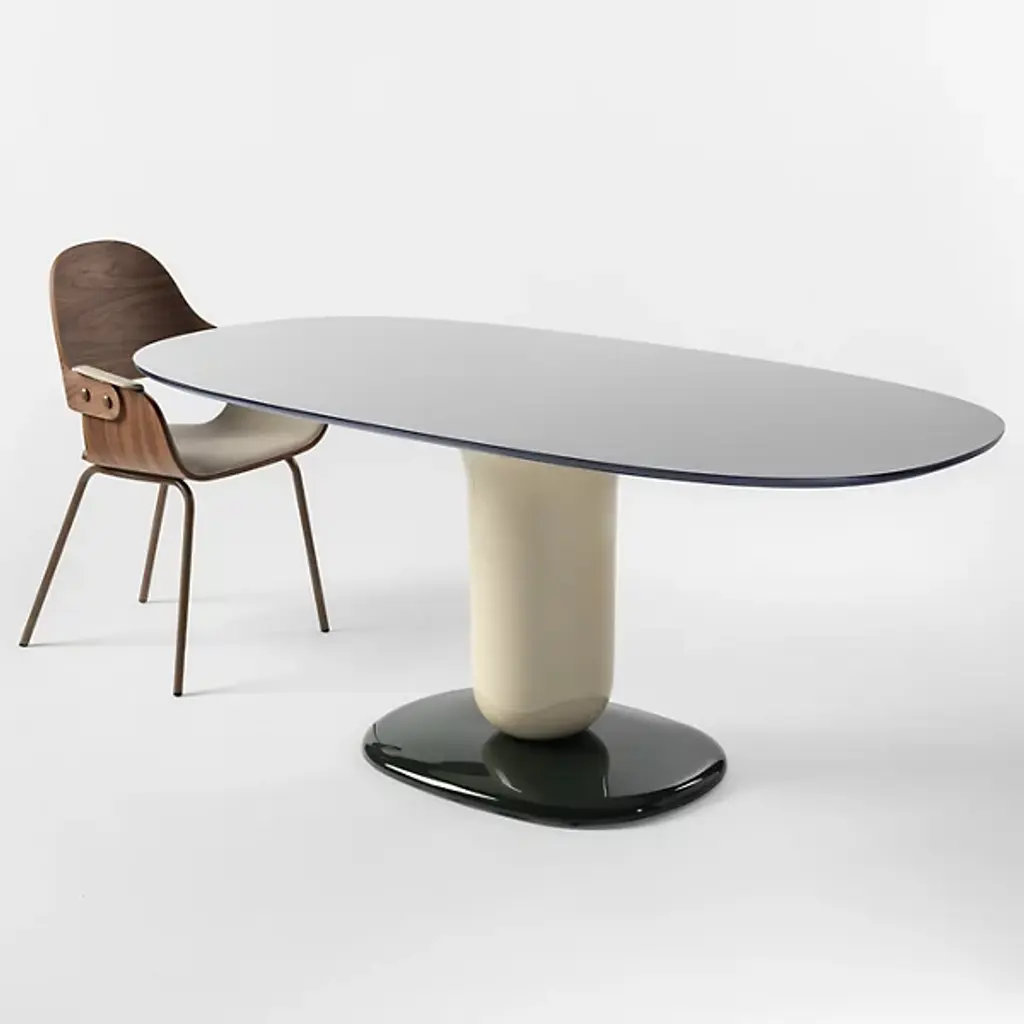 Have some fun while dining with the Explorer Oval Dining Table 5A from BD Barcelona. This dining table is designed by the inquisitive Jamie Hayon. The rounded and highly contoured look of this decorative piece pays tribute to jellybean candy. Your furnishment is crafted in the Spanish design tradition. Composed of steel and fiberglass, this elegant fixture is crowned by a streamlined top of MDF or fine glass, accentuating Explorer’s contemporary aesthetic.