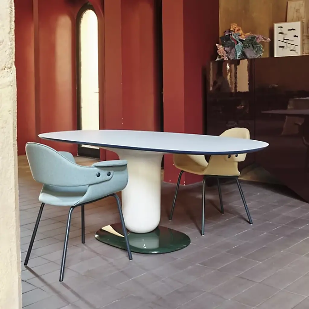 Have some fun while dining with the Explorer Oval Dining Table 5A from BD Barcelona. This dining table is designed by the inquisitive Jamie Hayon. The rounded and highly contoured look of this decorative piece pays tribute to jellybean candy. Your furnishment is crafted in the Spanish design tradition. Composed of steel and fiberglass, this elegant fixture is crowned by a streamlined top of MDF or fine glass, accentuating Explorer’s contemporary aesthetic.