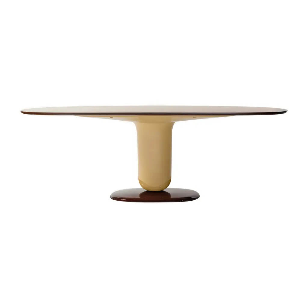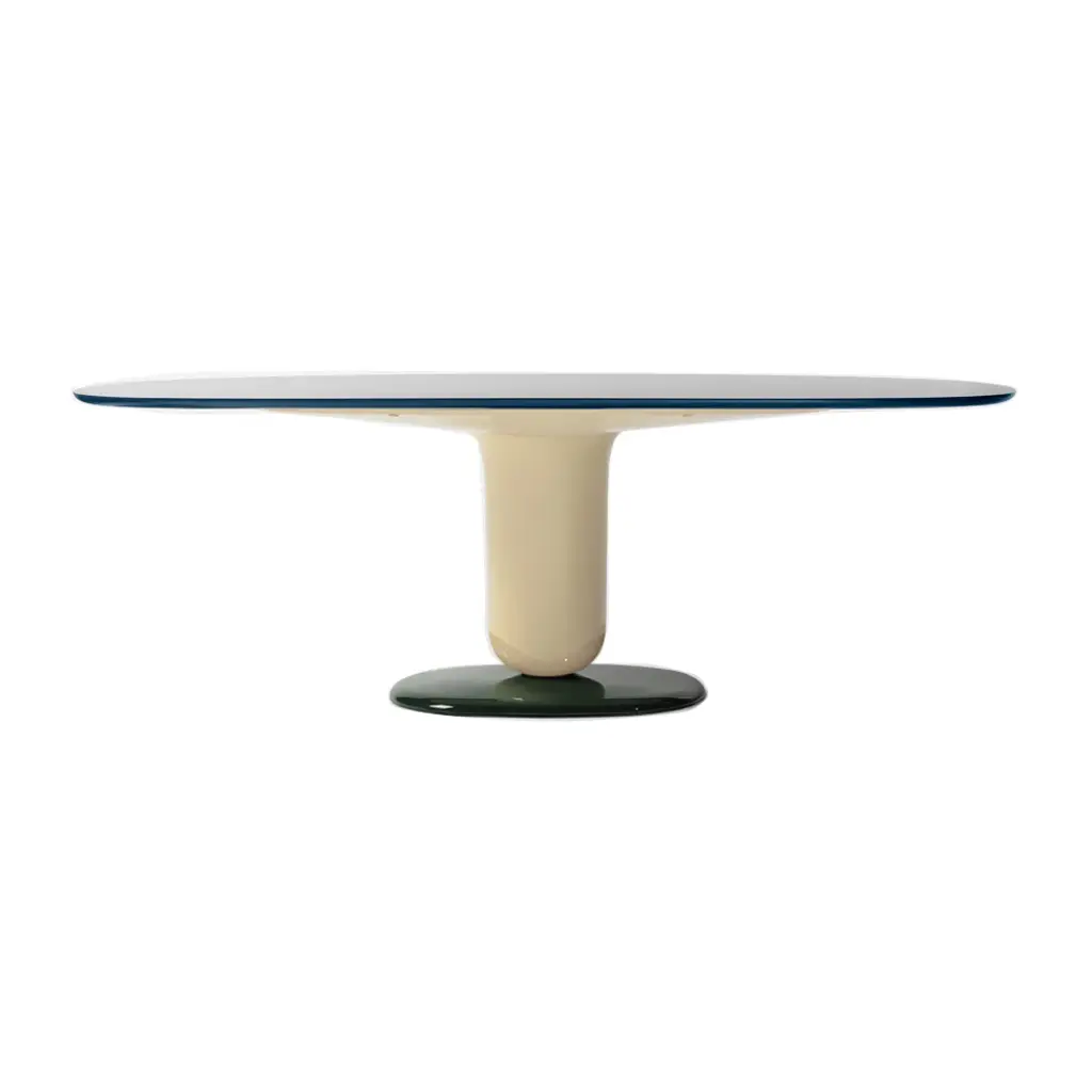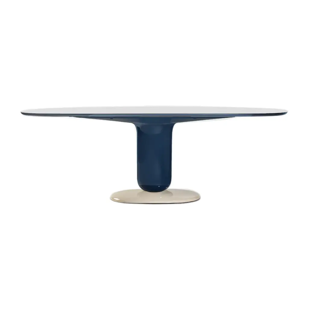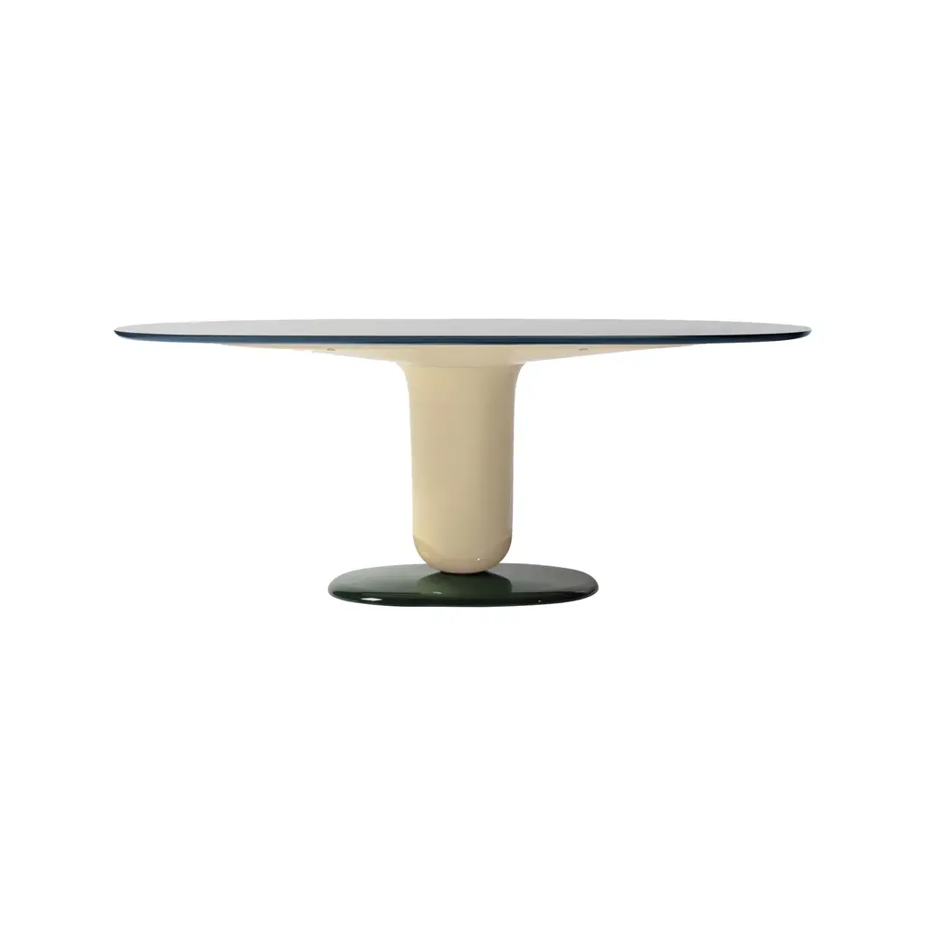 Indulge in a playful dining experience with the Explorer Oval Dining Table from BD Barcelona. Designed by Jamie Hayon, this steel and fiberglass piece pays homage to jellybean candies with its rounded and contoured form. Crafted in the Spanish tradition, it boasts a streamlined top of MDF or fine glass for a modern touch. Highlights