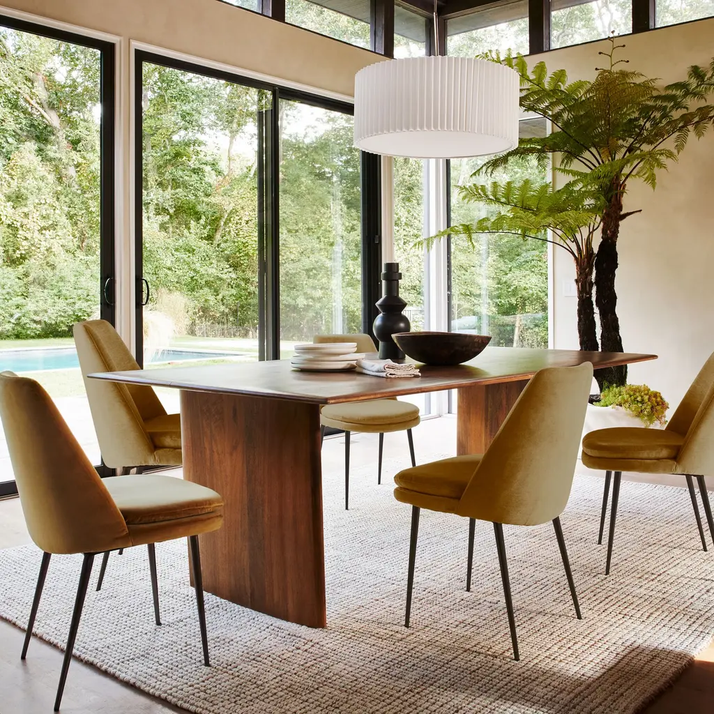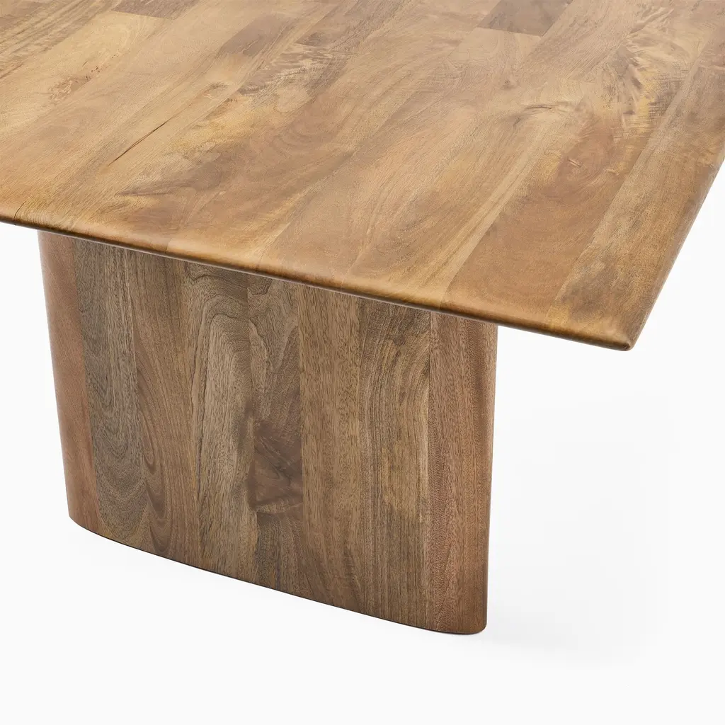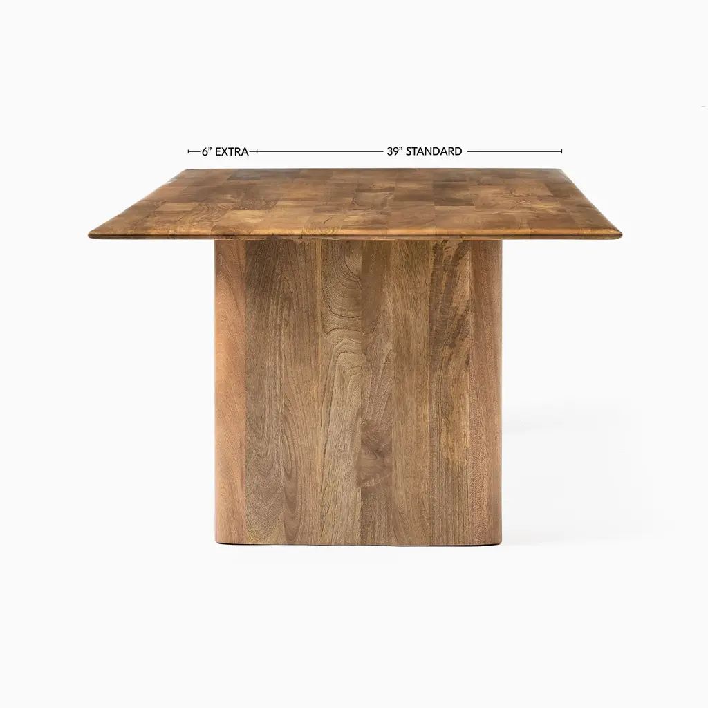 It's a substantial table with graceful lines. The extra-deep top is great for entertaining. Crafted from solid, sustainably sourced wood. Contract Grade, so you know it's built to last.