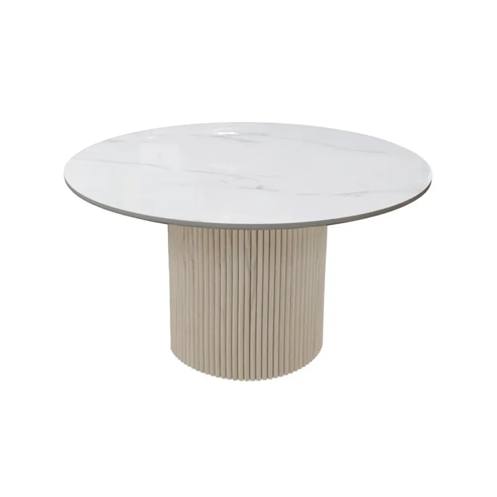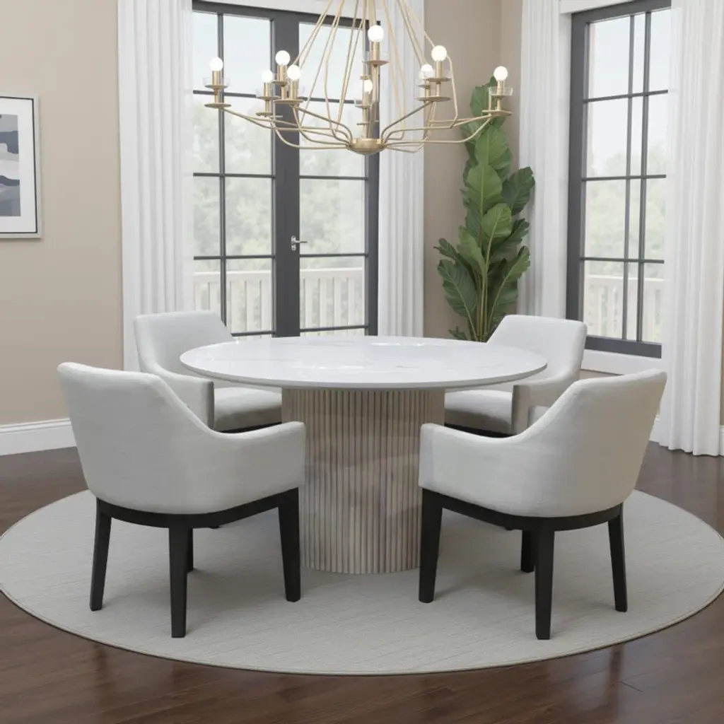 Fairmont Quartz Top Round Dining Table, White Wash Base