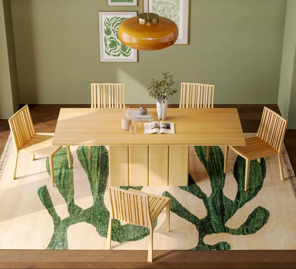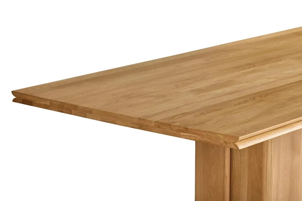 Fam Solid Oak Wood, Rectangular Dining Table for 6 People with Solid Oak Carrier Without Legs draws attention with its elegant and meticulous design. The central carrier in the middle instead of the traditional four legs gives the table a modern and minimalist look. The solid oak material stands out with its durability and natural beauty.