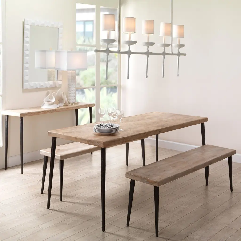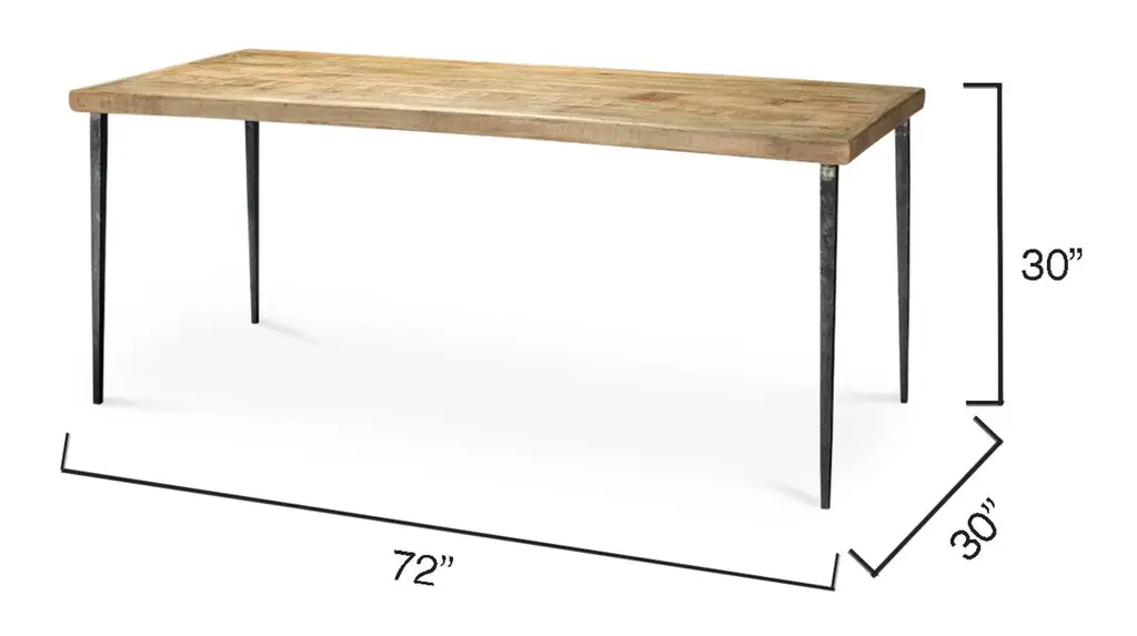 Bring the charm, quality and simplicity of rustic farmhouse style to your dining space. Made from Mango wood and Iron, each table is meticulously crafted to highlight the natural beauty of these materials. The hammered antique iron legs provide an industrial edge, complemented by hand-worked natural wood tops that showcase distinctive knots, graining, and a varied natural finish, ensuring each table possesses its own unique character. Embrace the craftsmanship and versatility of this piece, an ideal addition for infusing warmth and style into any space.