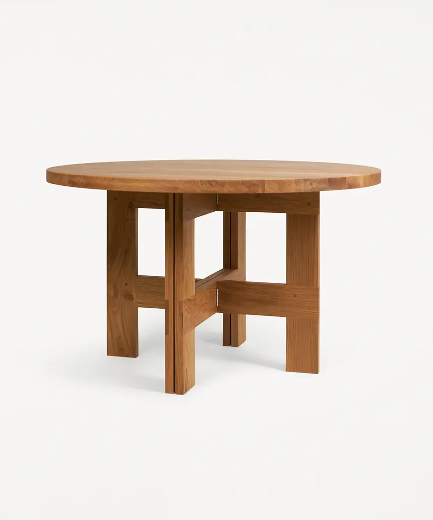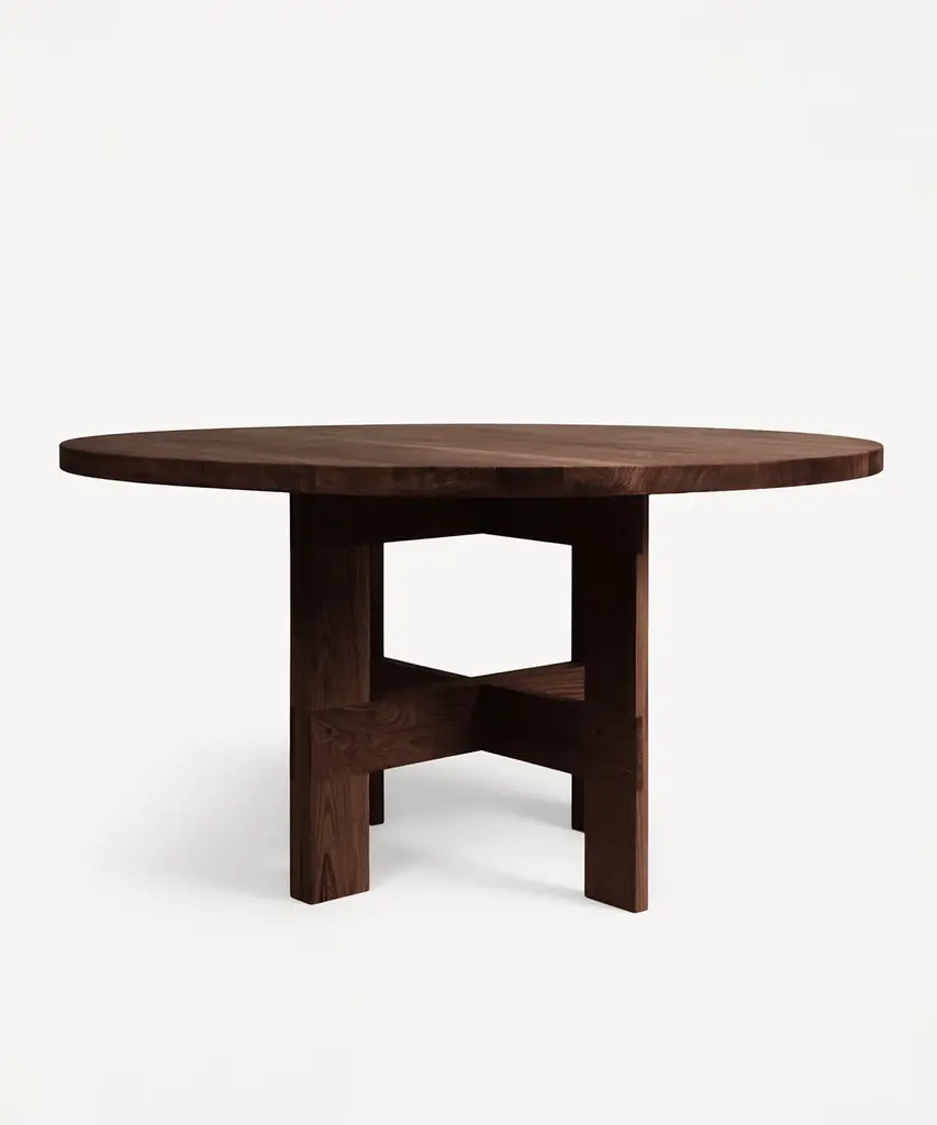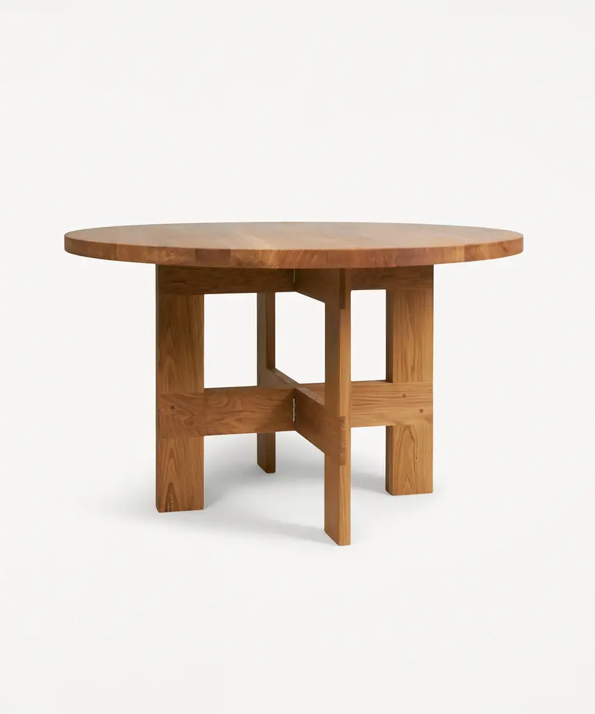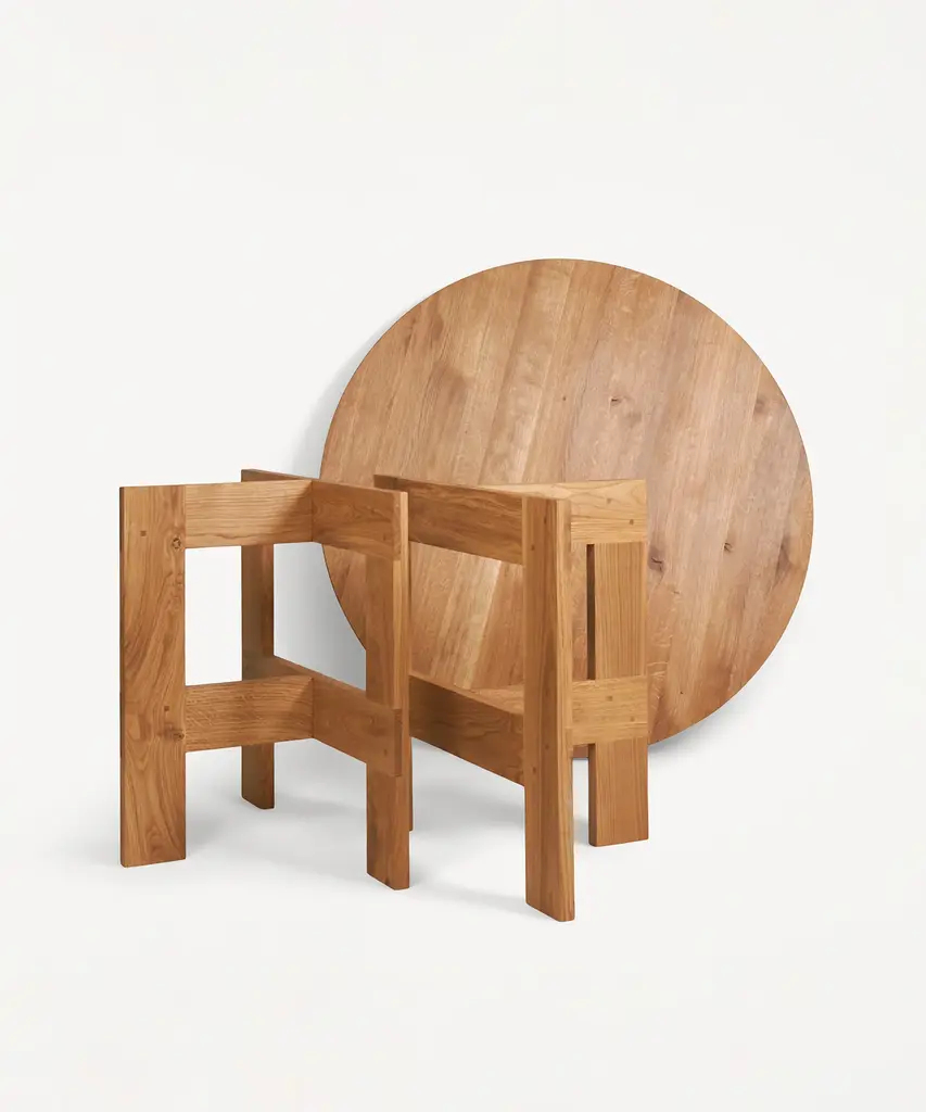 The Farmhouse Trestle Table Round features a round table top crafted in high-quality solid oak. Supported by trestles and inspired by traditional farmhouses with a rural aesthetic, the wooden dining table serves as a focal point in any living space, kitchen, or dining room. Produced by Frama - an interior and product design studio based in Copenhagen. The studio is a dynamic testing ground for new designs and projects, embodying their classical, yet boundary-pushing approach.