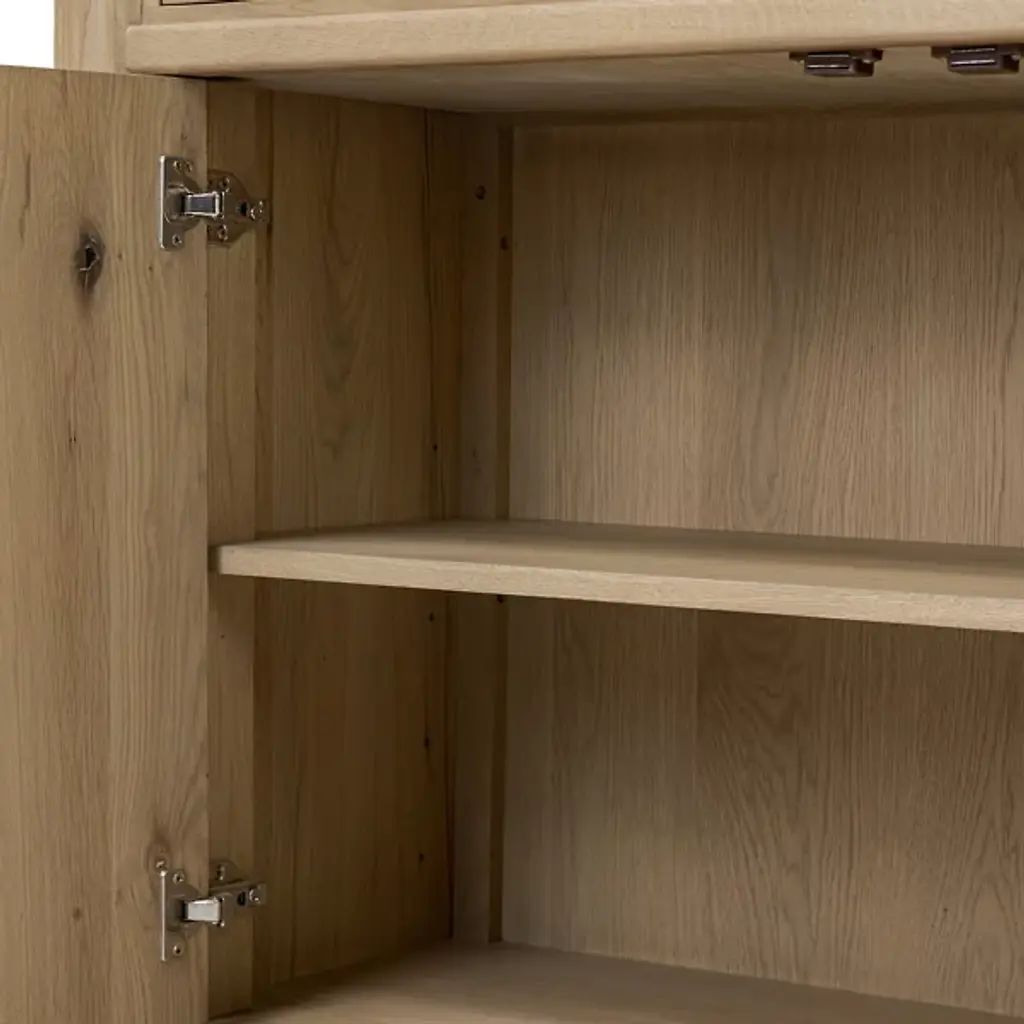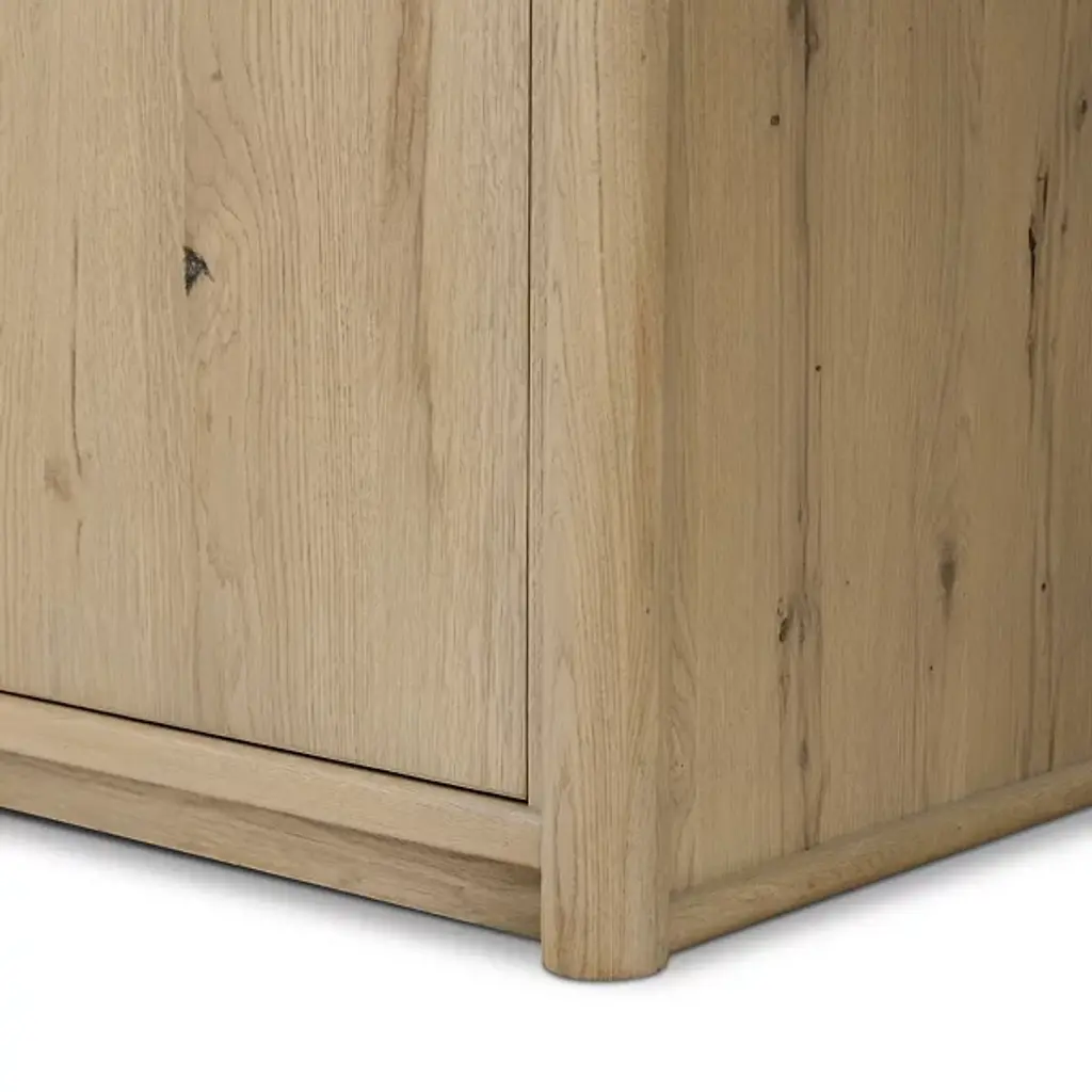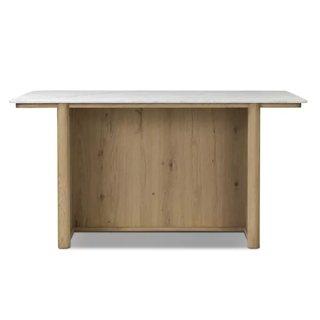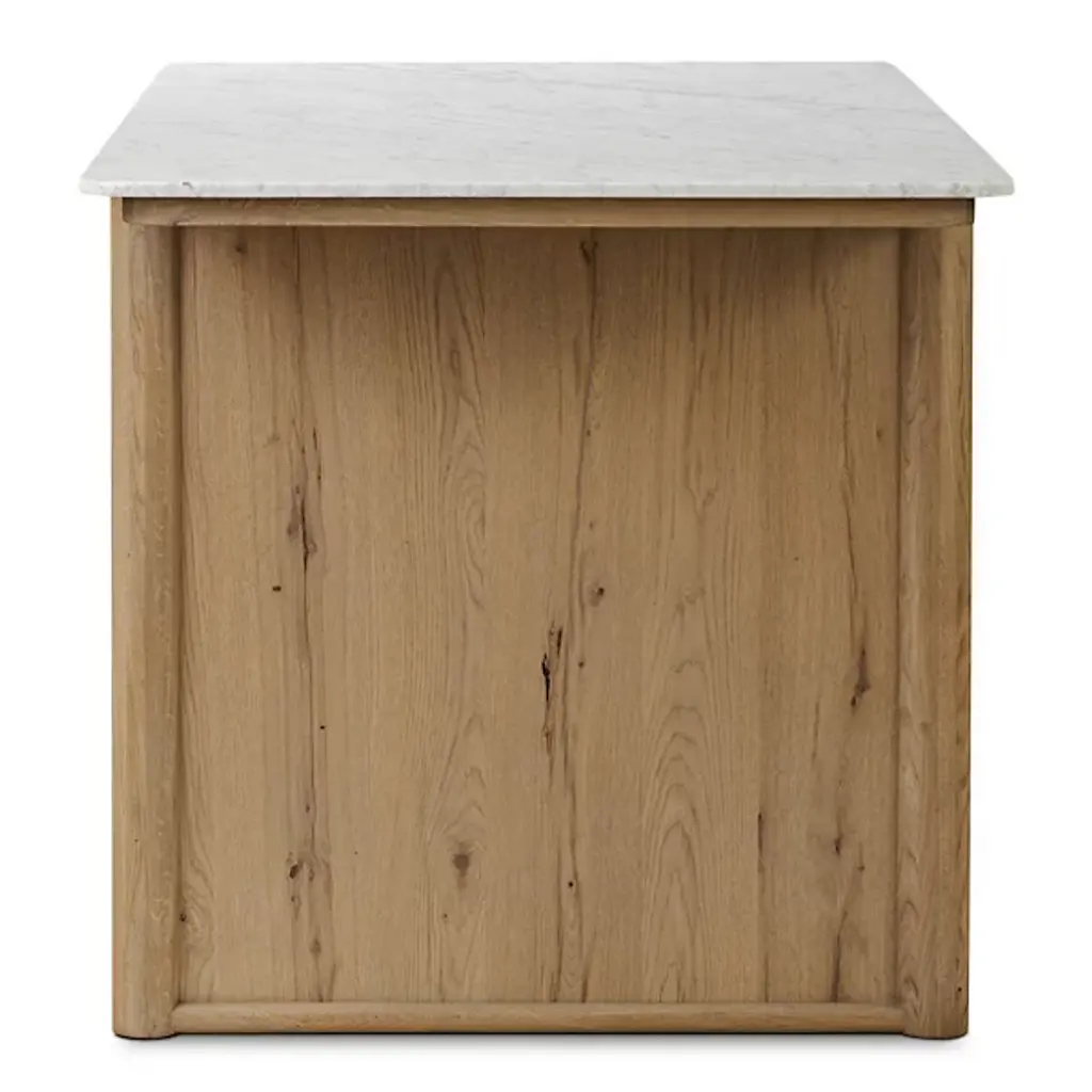 The Fatima Dining / Kitchen Table from Four Hands brings professional kitchen convenience home with its integrated storage design. This multipurpose marvel combines Carrara marble's natural beauty with oak's enduring appeal. Two top drawers and lower cabinets with adjustable shelving accommodate everything from cutlery to small appliances. The closed construction creates a built-in appearance that enhances any kitchen layout. Built to support 200 pounds, it serves as both a prep station and a natural gathering spot while cooking or entertaining with family and friends.
