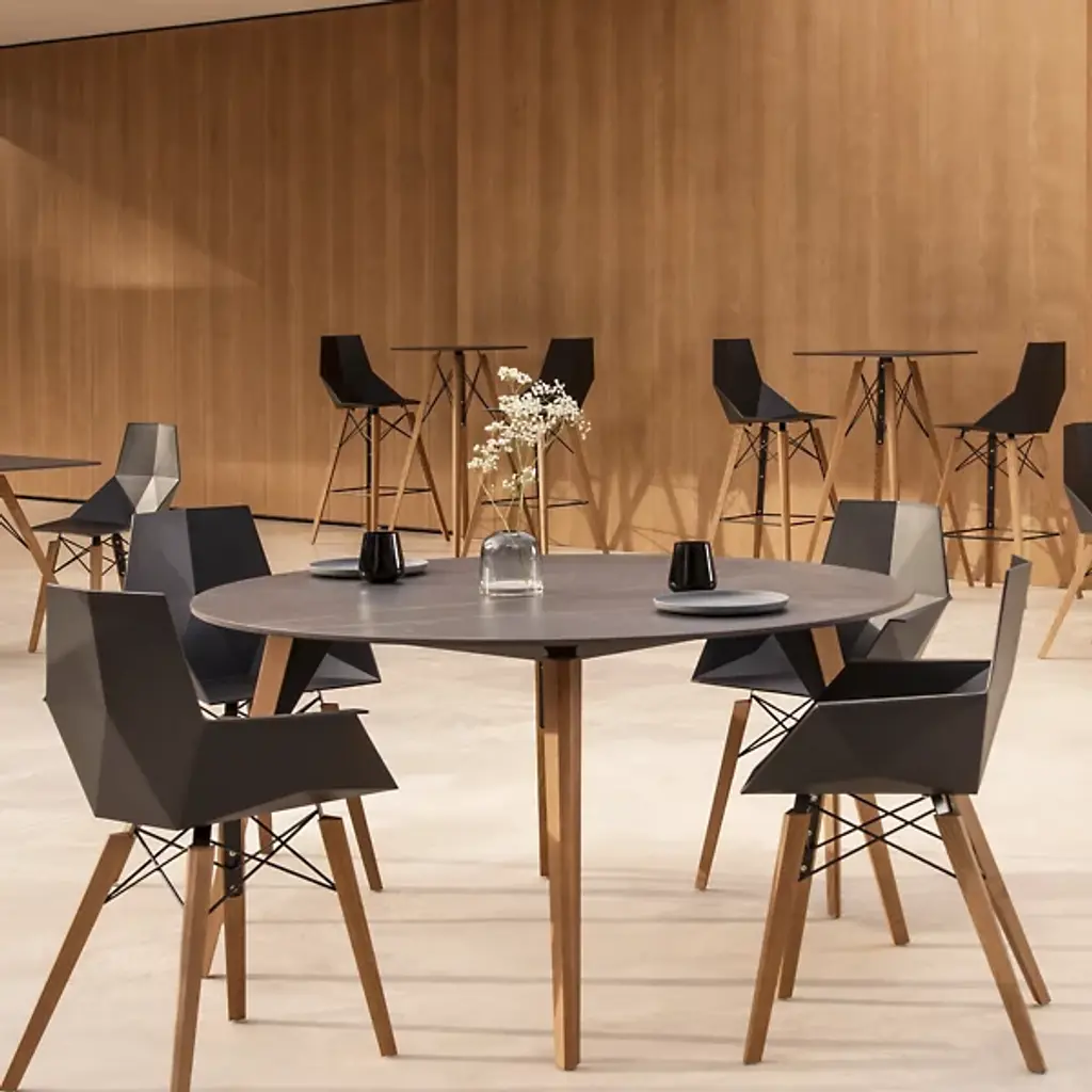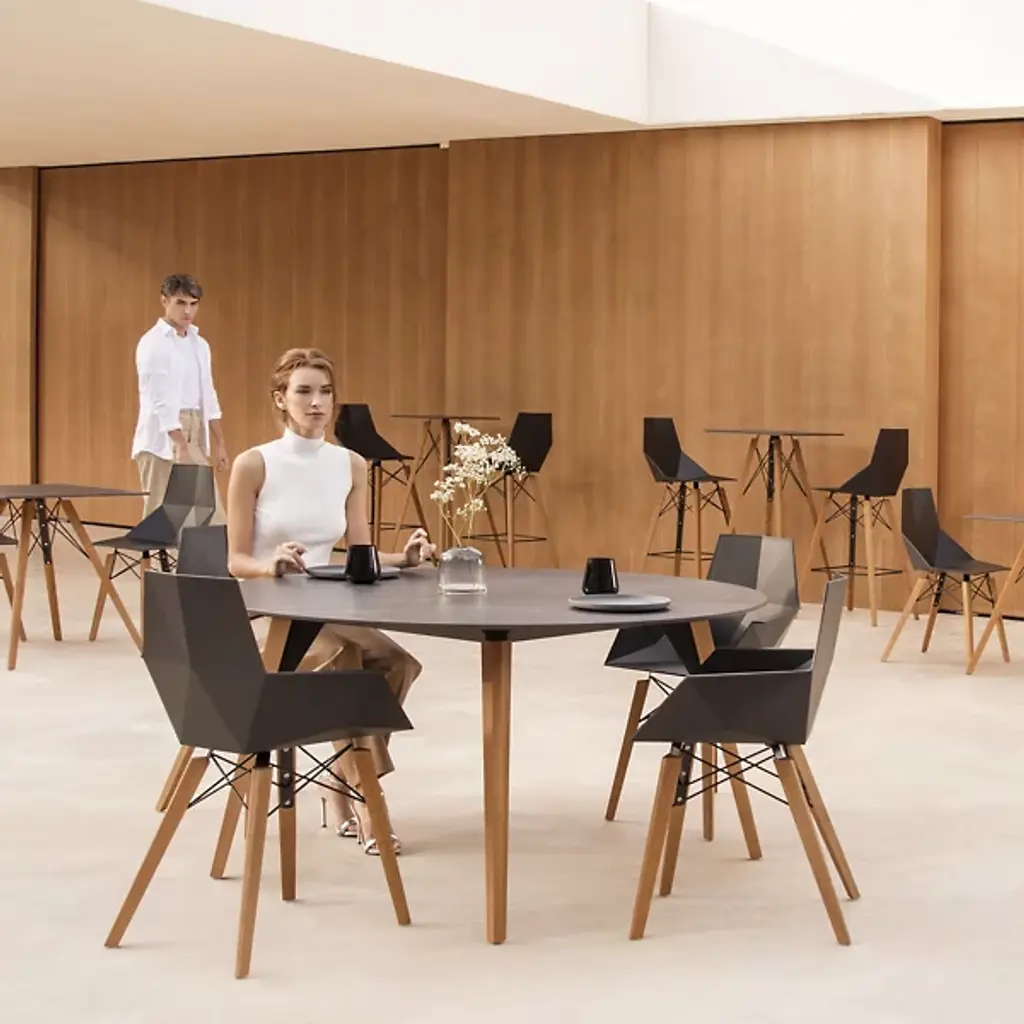 Create a dynamic and fun focal point for your game room or finished basement space with the Vondom Faz Wood Round Lounge Table. This stylish, lounge table is built with rich tabletop and strong legs, a perfect harmony of form and function. This lightweight table piece is designed for indoor use only. From the design to the performance, this round lounge table will transform the look of your dining room, finished basement or game room.