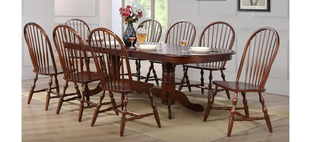 Invite an international touch of French country, British Caribbean and traditional American styles into your home with this Fenway double pedestal dining table with leaves. Welcome guests with the warmth and comfort of this classic timeless piece. Its versatile style will complement just about any decor in your home for years to come. Warm and inviting with a touch of casual elegance, the classic beauty and craftsmanship of this dining table makes it equally appropriate for your kitchen or dining room fulfilling all your formal and informal dining needs.