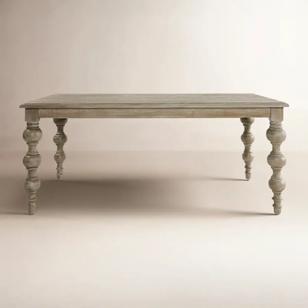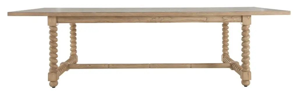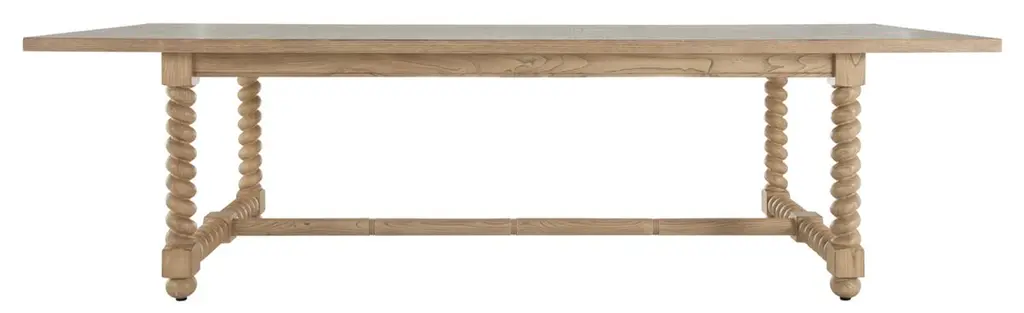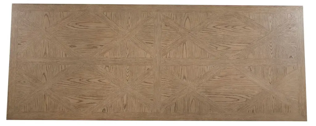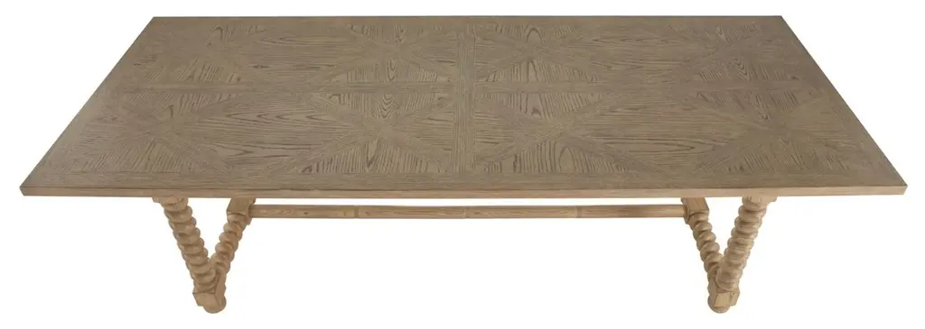 The Ferdinand Dining Table draws inspiration from French antique farm dining tables, elegantly merging vintage charm with modern functionality. Honoring classic design elements such as the parqueted veneer tabletop and traditional structure, it seamlessly fits contemporary standards. Crafted from quality materials, this table showcases intricate wood grain patterns and a meticulously crafted surface. With its generous dining space, it's perfect for gatherings and meals with family and friends. Its solid construction and stylish finish make it a standout piece in any dining area, offering both functionality and aesthetic appeal.