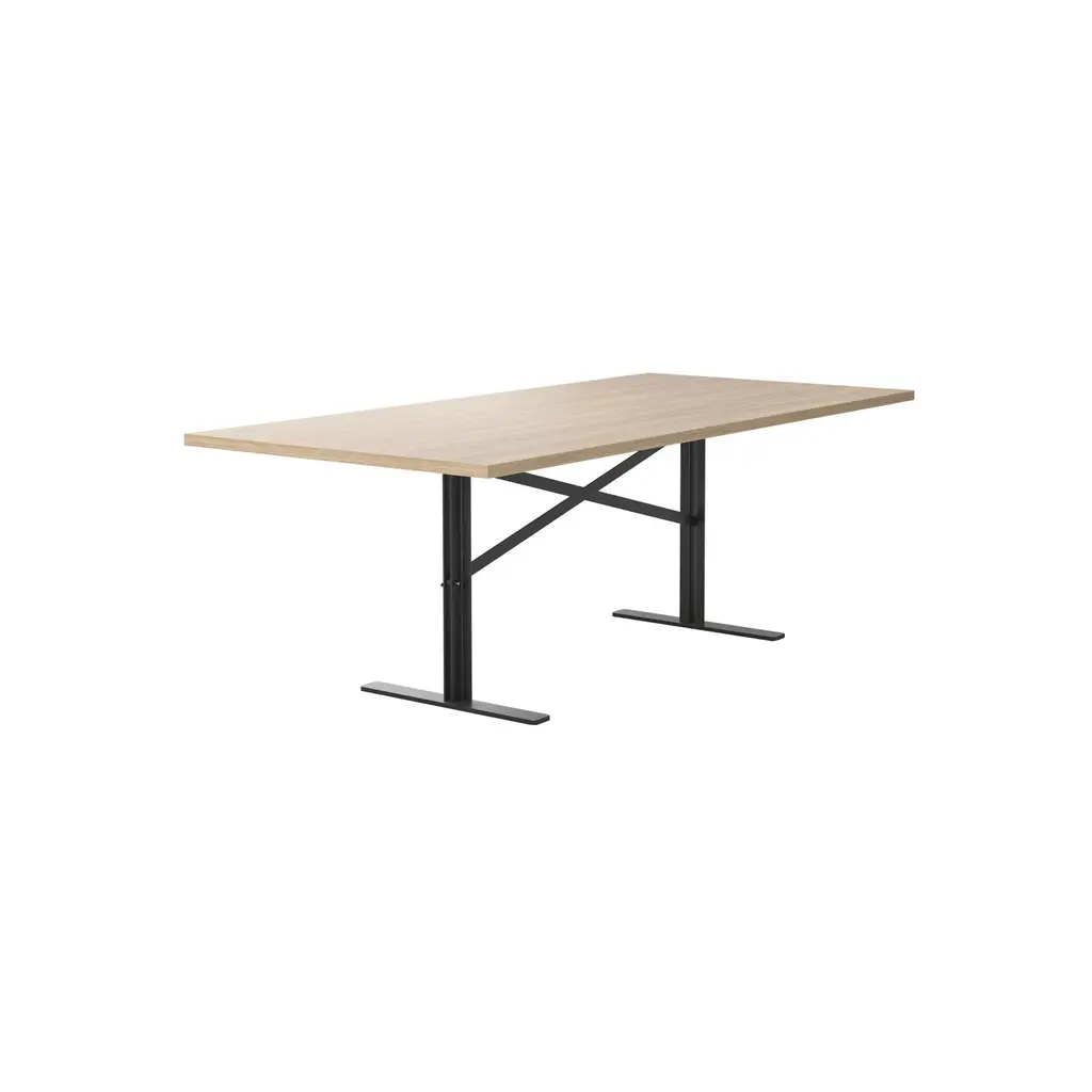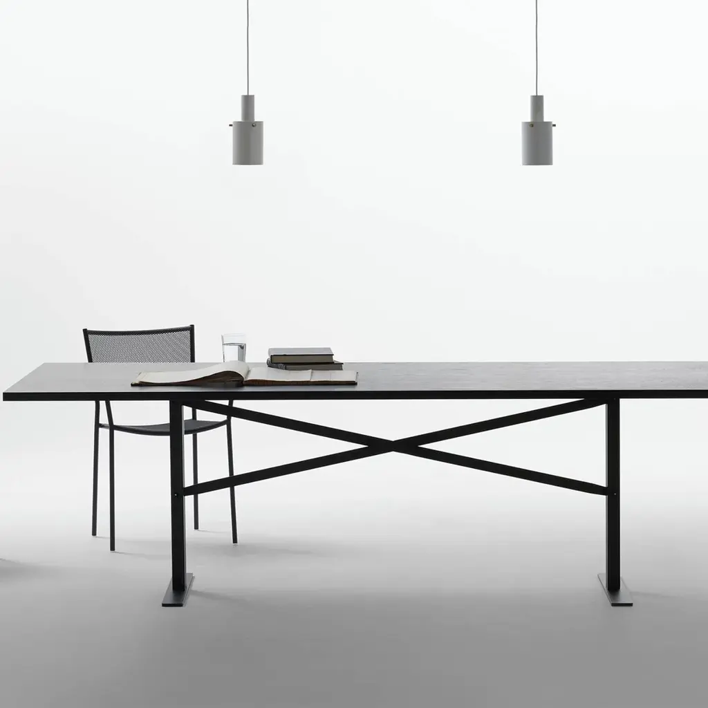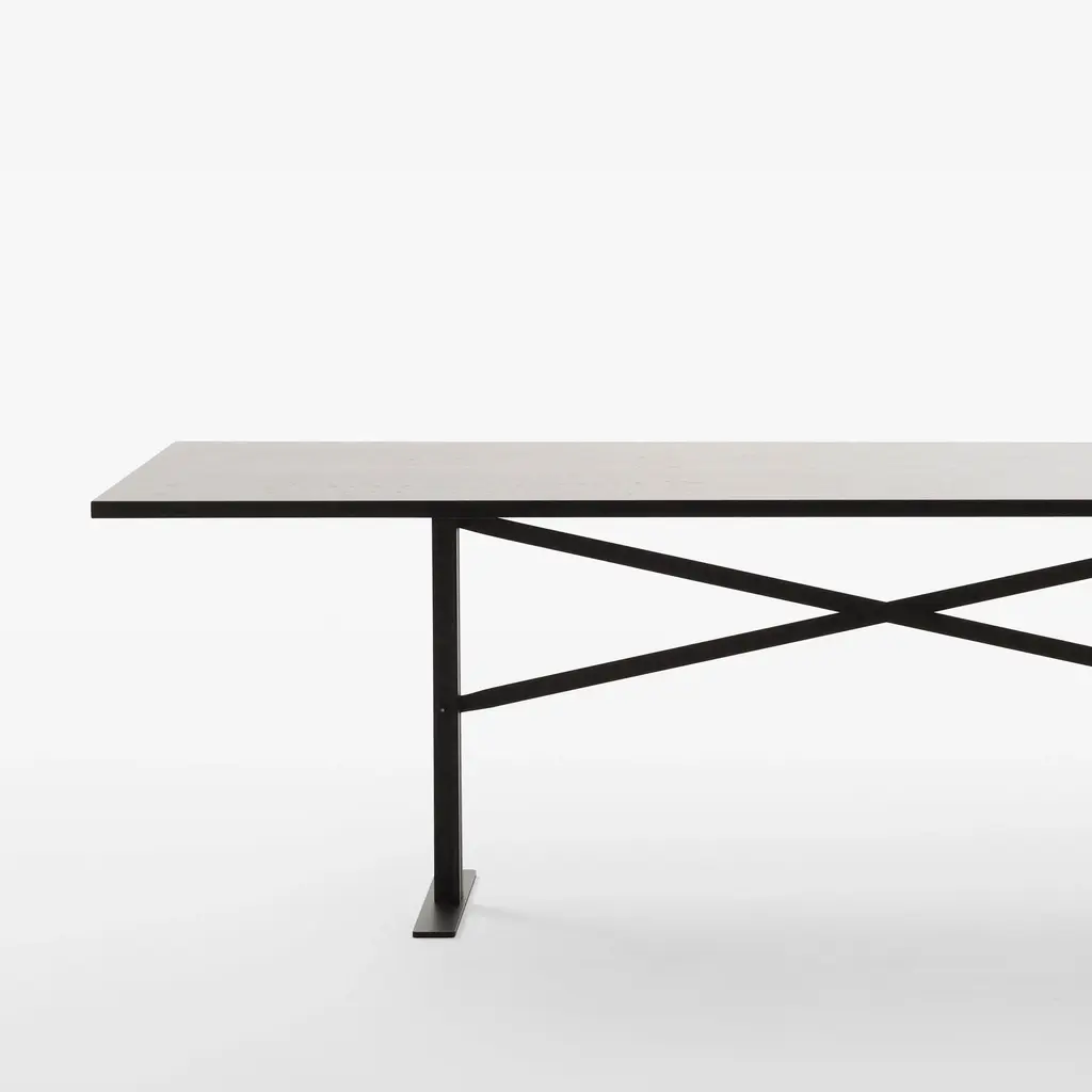 Consider the conundrum of finding a table sturdy enough for work but also elevated in sensibility to anchor a dining space. Ferric is an exceptionally solid piece, with a striking base in painted steel and a warm wood tabletop available in a variety of finishes. Massproductions fashions a truly multifunctional table, up to the demands of meeting work deadlines or collaborative conferencing and also the foundation for stylish mealtimes.