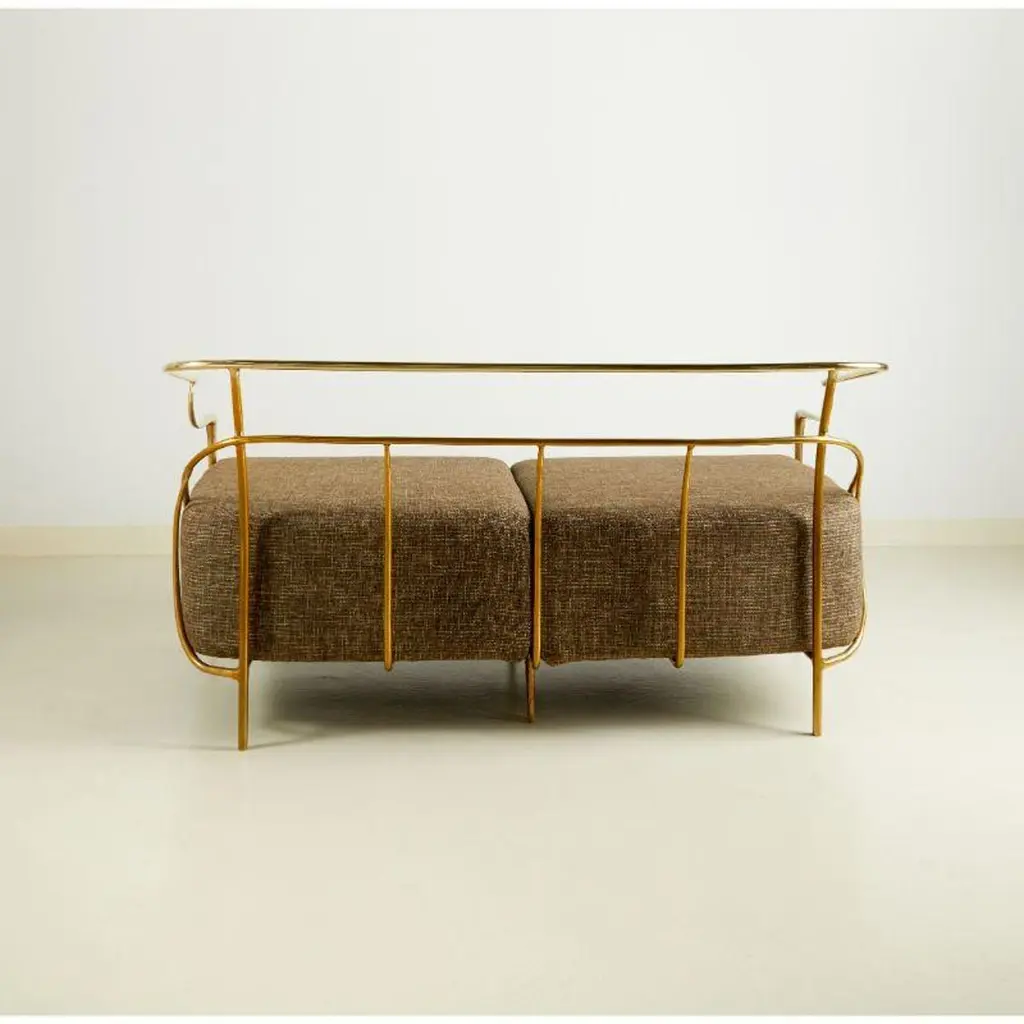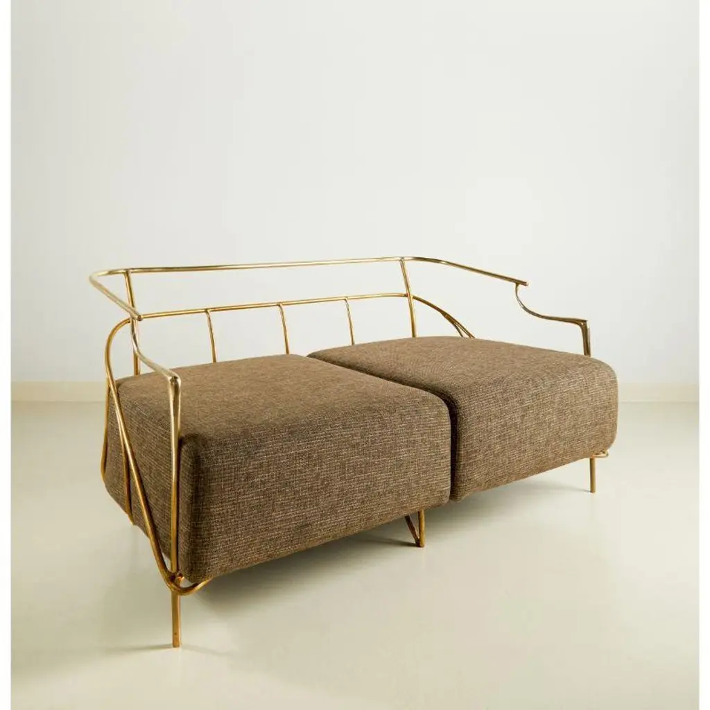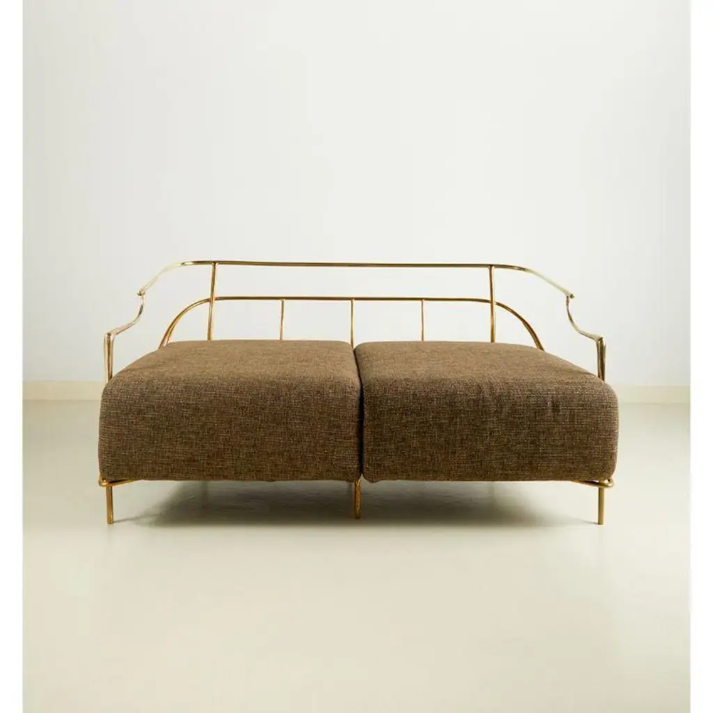 Fig Sofa – Contemporary Brass Frame With Brown Upholstery By Misaya