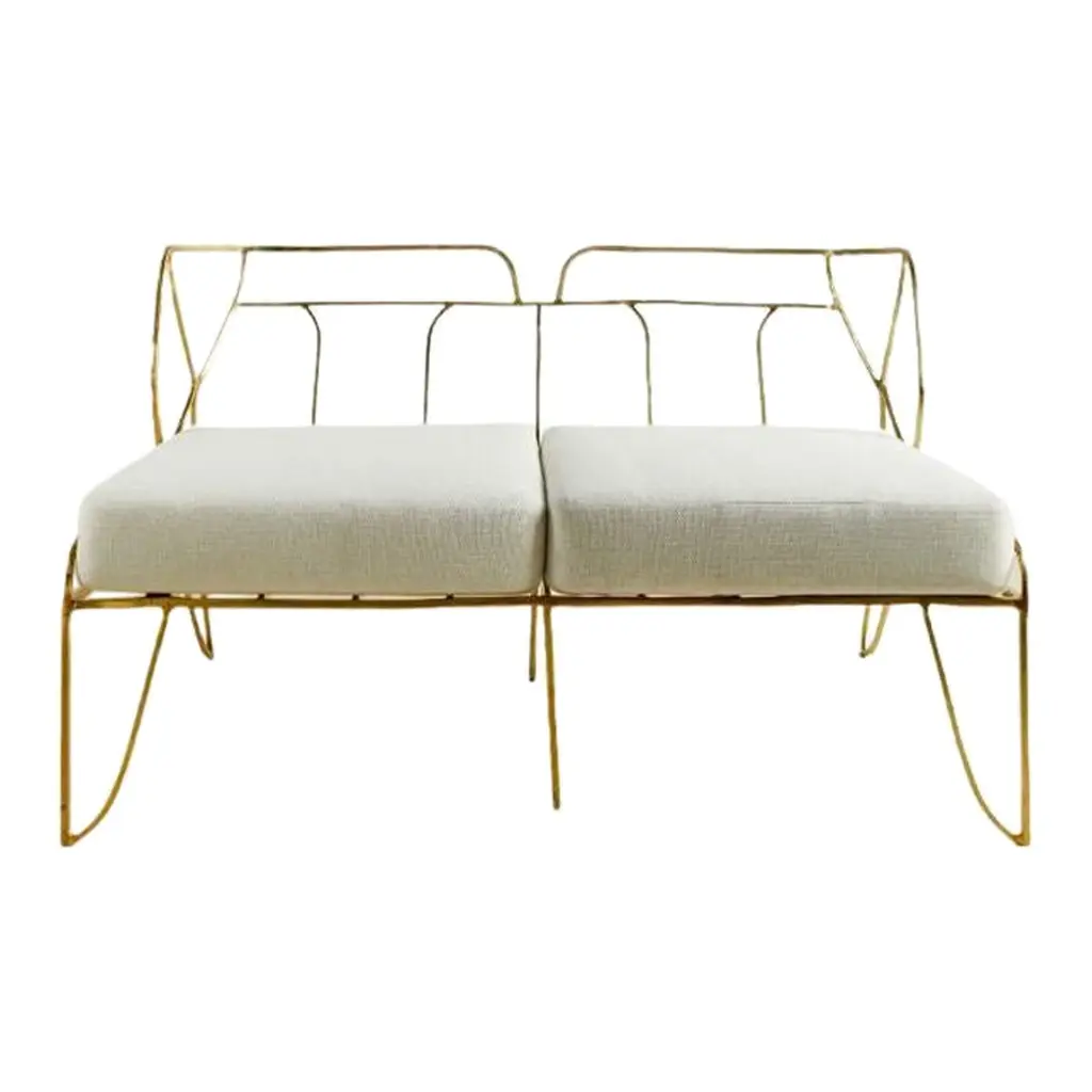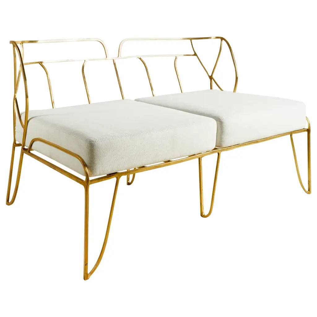 Fig Sofa – Contemporary Brass Frame with Brown Upholstery by MisayaDimensions: W 140 x D 72 x H 68.5 cmMaterials: BrassAlso available: Different colors (gold, polished brass. black, painted brass) and materials ( wood, marble, or glass tops)MASAYA is our brand’s collection which combines stylishly refined designs with the purity of solid wood & marble tops and bronze bases. MASAYA creates both classic and contemporary furniture that fits seamlessly into our everyday lives. As Thailand is globally renowned for its unsurpassed bronze work, products from our collections are often a unique mix of wood and bronze home furniture. These include dining tables, coffee tables, consoles, stools, benches, chairs, cocktail& side-tables both for in-house or out-doors decorations. Our Wood consists of Teak Wood, also available in Makha Wood, Burma Pradauk Wood (also known as Andaman Red Wood) and others to suit your preferences.MASAYA furniture is authentic, comfortable and natural. It is strong, functional and sturdy. Every product is finished carefully in our own workshops in Thailand. Each design embodies the same refined craftsmanship and adds to create a homely atmosphere. Our furniture design is created to give a naturally elegant look to your household, making you and your guests feel at home and welcomed.