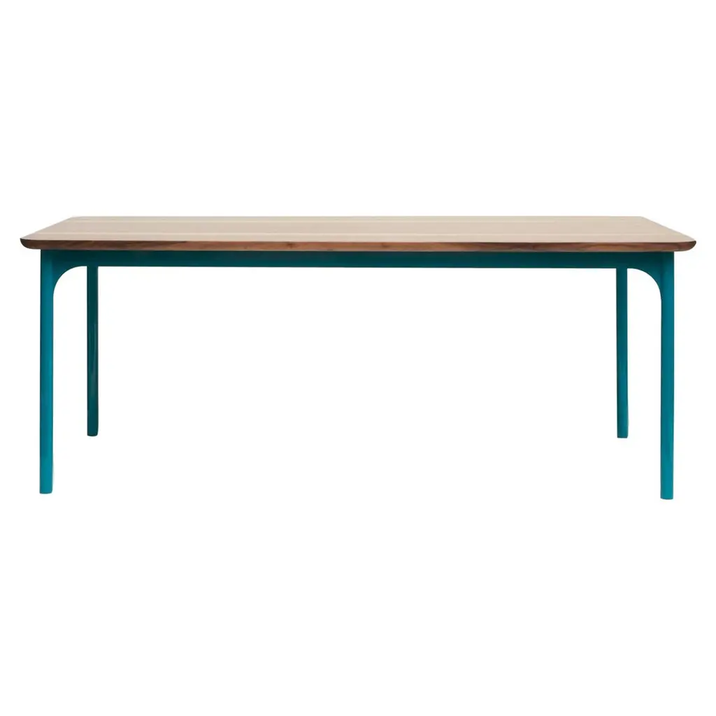Working a contemporary spin on the traditional rustic style, the Fillet Table exudes effortless elegance with its slender silhouette that will instantly elevate any dining area. The solid walnut wood top is supported by tubular metal legs with laser-cut crosspieces in a splendid cerulean finish. Suitable for dressing both up or down, this well-proportioned design makes a strong statement in a modern and rustic-inspired home.