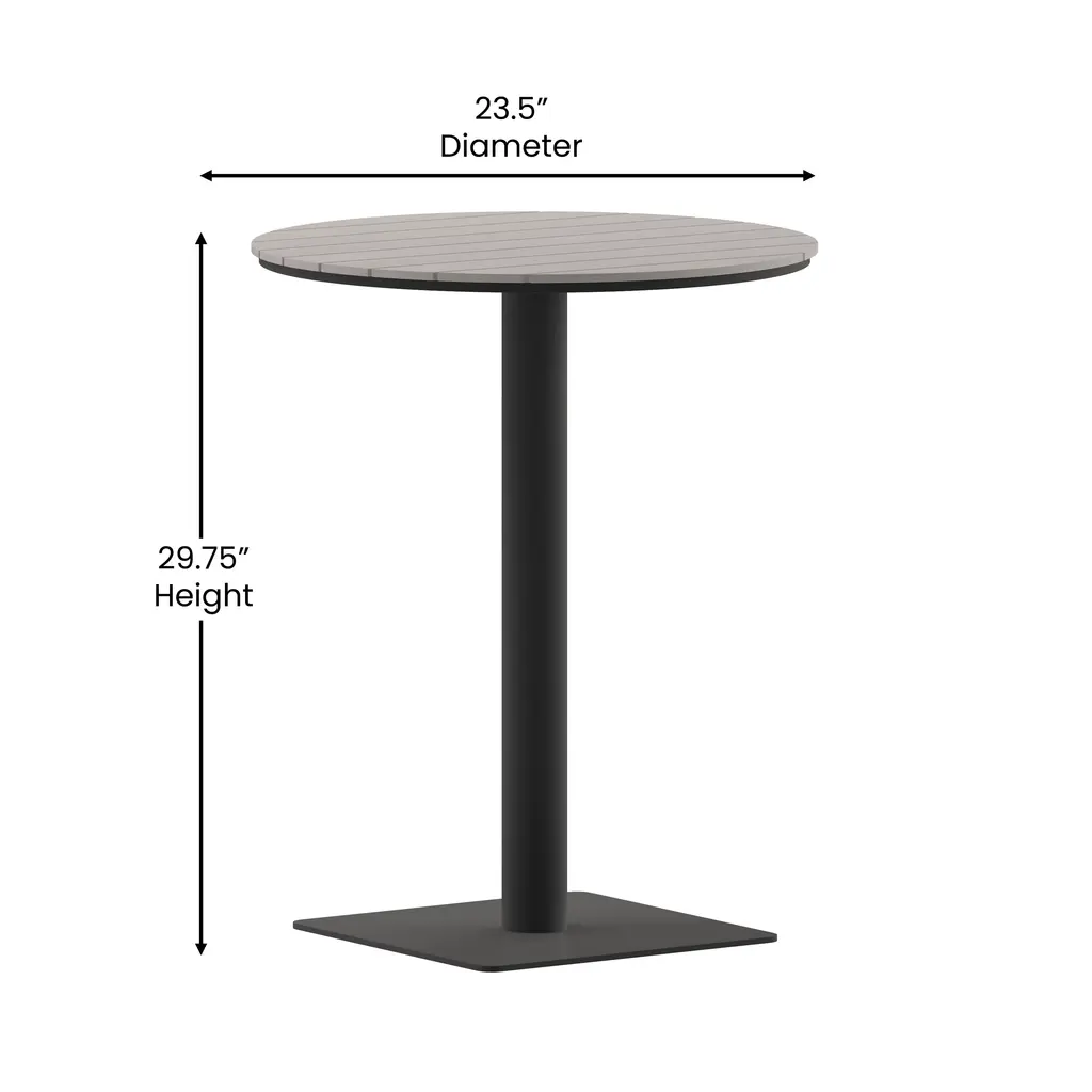 Finch Commercial Grade Round 24" Table With Faux Teak Poly Slats And Steel Frame