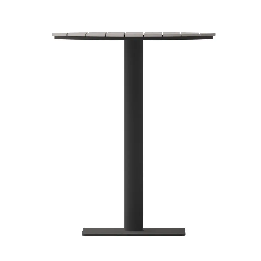 Finch Commercial Grade Round 24" Table With Faux Teak Poly Slats And Steel Frame
