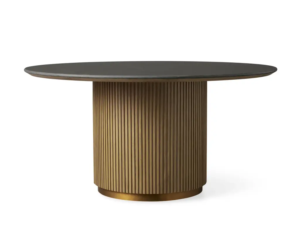 Our Finnley Collection showcases a stunning mixed-material design, inviting elevated style into any room in your home. Hand-finished pine from Finland is luxuriously complemented by a stone top, accented by light brass plinth bases and reeded oak detailing. The result is an eclectic-yet-chic collection that easily fits into any aesthetic.