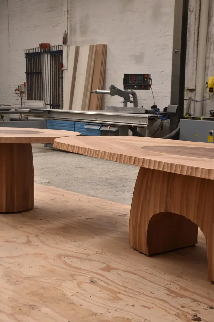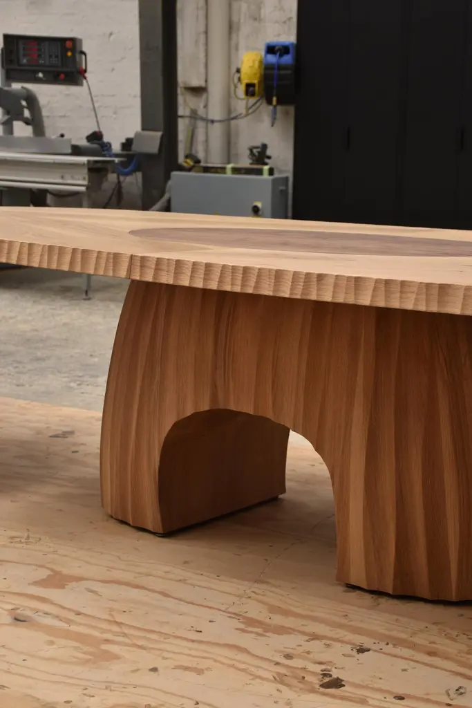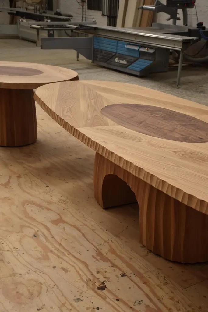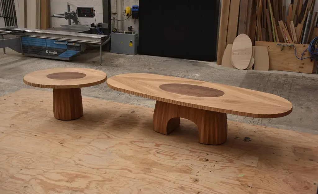 Flack Oval Dining Table by Daniel PooleDimensions: D 120 x W 300 x H 74 cm. Materials: American white oak and American black walnut.A bespoke commission designed and developed for Flack Studio’s Happy Haus. Custom sizes and variations are available on request. Please contact us. Daniel Poole PL is a bespoke furniture design studio and product design studio in Melbourne, Australia. Providing bespoke design consultancy, design strategy and development combined with a comprehensive in-house master cabinet-making studio. Daniel Poole studied Industrial Design at RMIT followed by a qualification in Cabinet-Making. Daniel Poole PL commissions are certified with authenticity and 10 years of warranty.