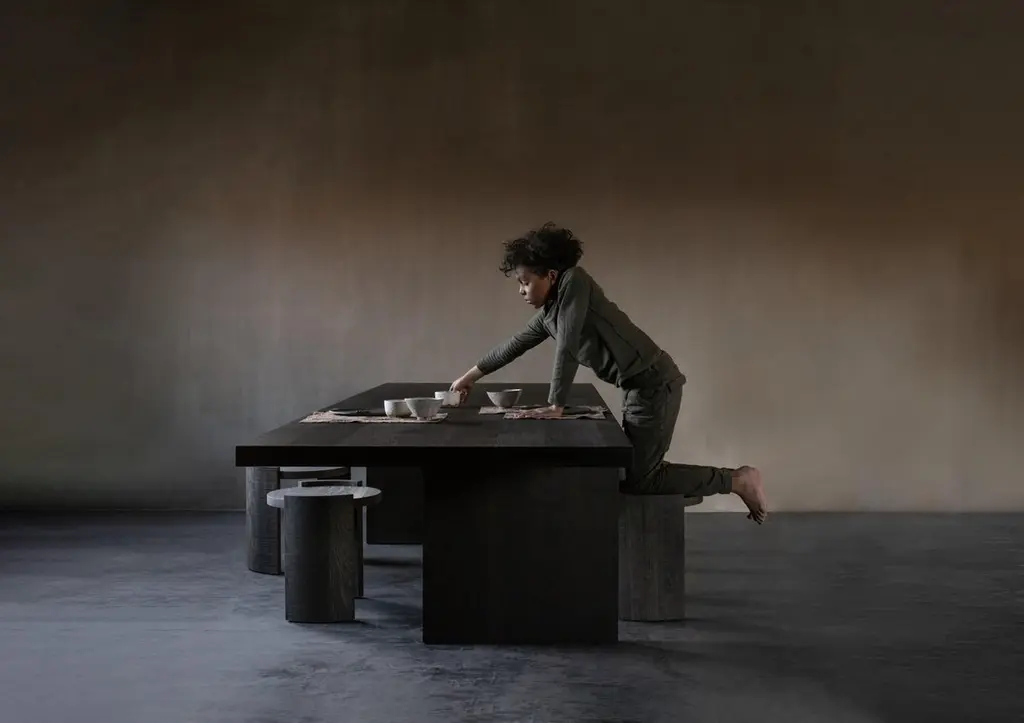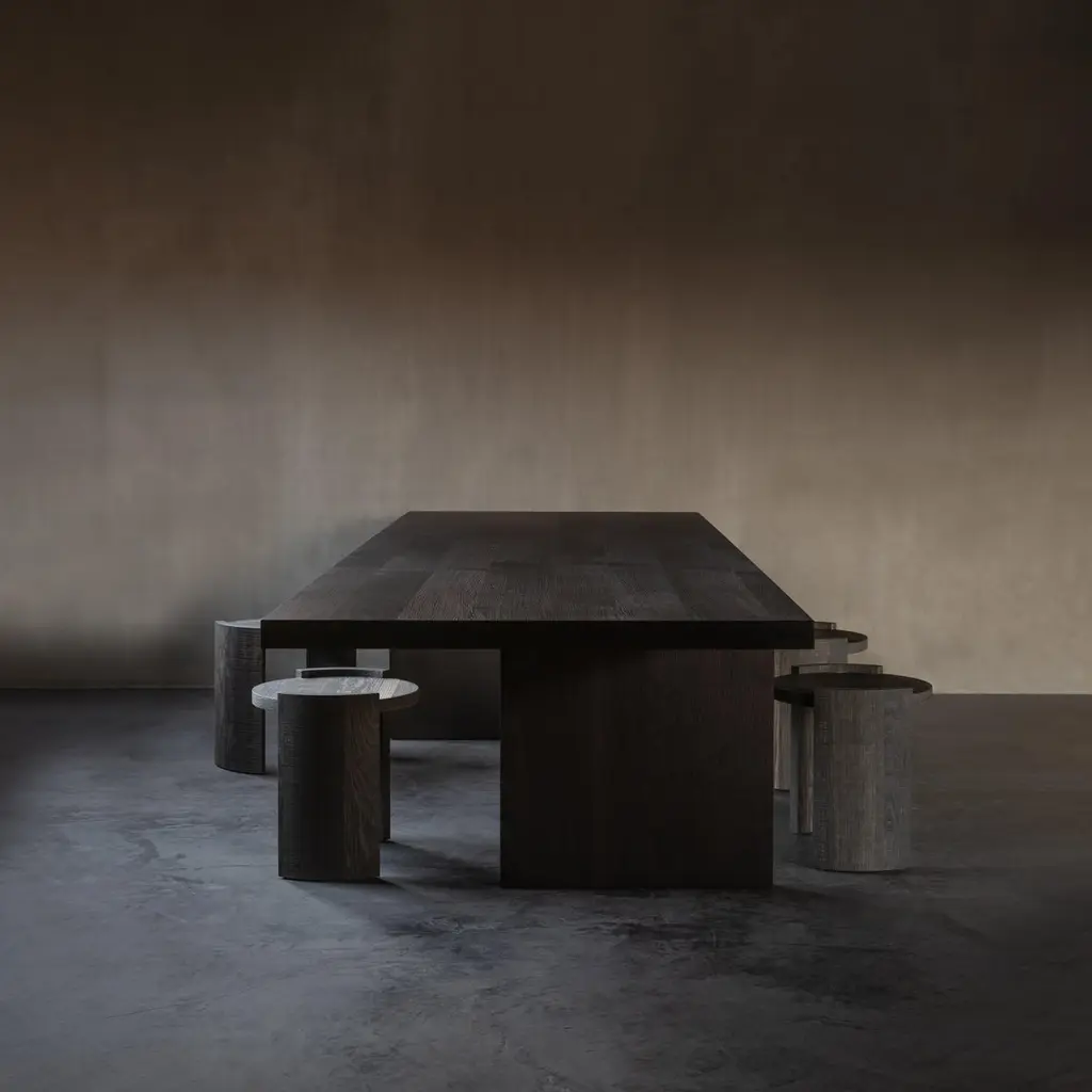 Float table by Kana ObjectsDimensions: D 110 x W 260 x H 73 cmMaterials: Smoked oak.Available in other sizes: 260, 280, 300, and 320 cm.Also available in natural oak. The diagonal positioning of Float’s legs, handmade in noble oak varieties, creates the illusion of a floating top. This massive feat of minimalism invites you to celebrate dining rituals up to 12 guests.KANA creates beautiful furniture, handmade in Belgium and Italy with natural materials. Inspired by traveling the world... we create furniture with a soul. Timeless craftmanship that will be a part of your family for years to come. We love to create tailormade products that will fit your life perfectly. KANA strives to take a place in your heart and in your family.