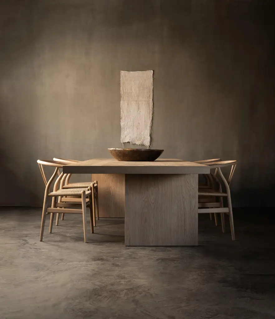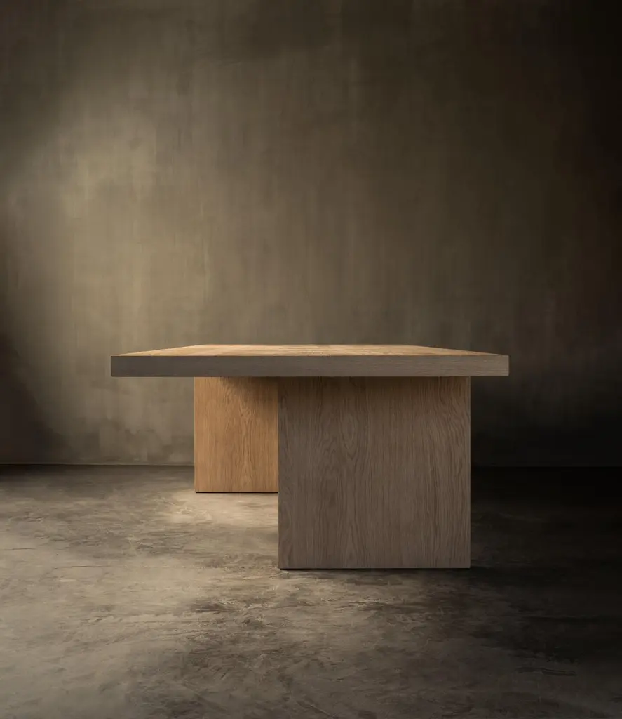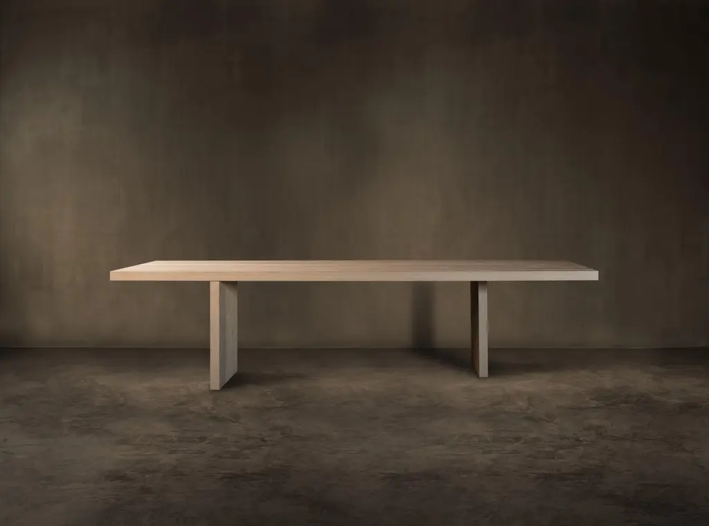 Float table by Kana ObjectsDimensions: D 110 x W 260 x H 73 cmMaterials: Natural oak.Available in other sizes: 260, 280, 300, and 320 cm.Also available in smoked oak. The diagonal positioning of Float’s legs, handmade in noble oak varieties, creates the illusion of a floating top. This massive feat of minimalism invites you to celebrate dining rituals up to 12 guests.KANA creates beautiful furniture, handmade in Belgium and Italy with natural materials. Inspired by traveling the world... we create furniture with a soul. Timeless craftmanship that will be a part of your family for years to come. We love to create tailormade products that will fit your life perfectly. KANA strives to take a place in your heart and in your family.