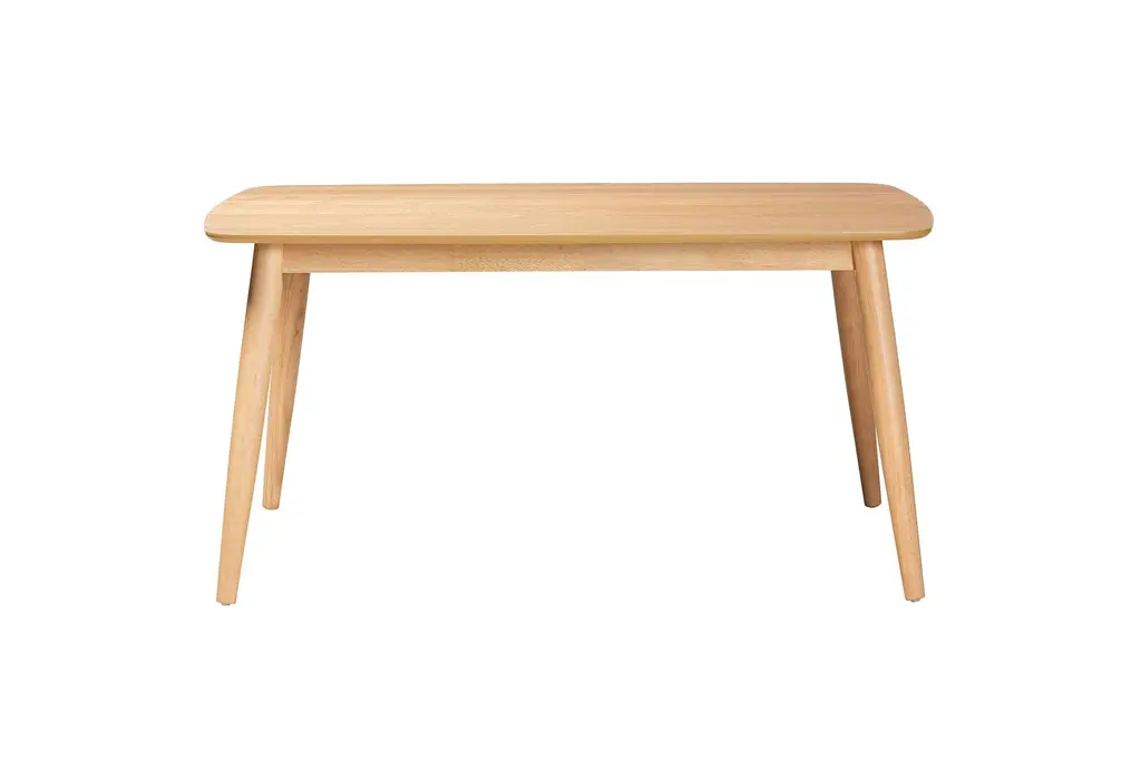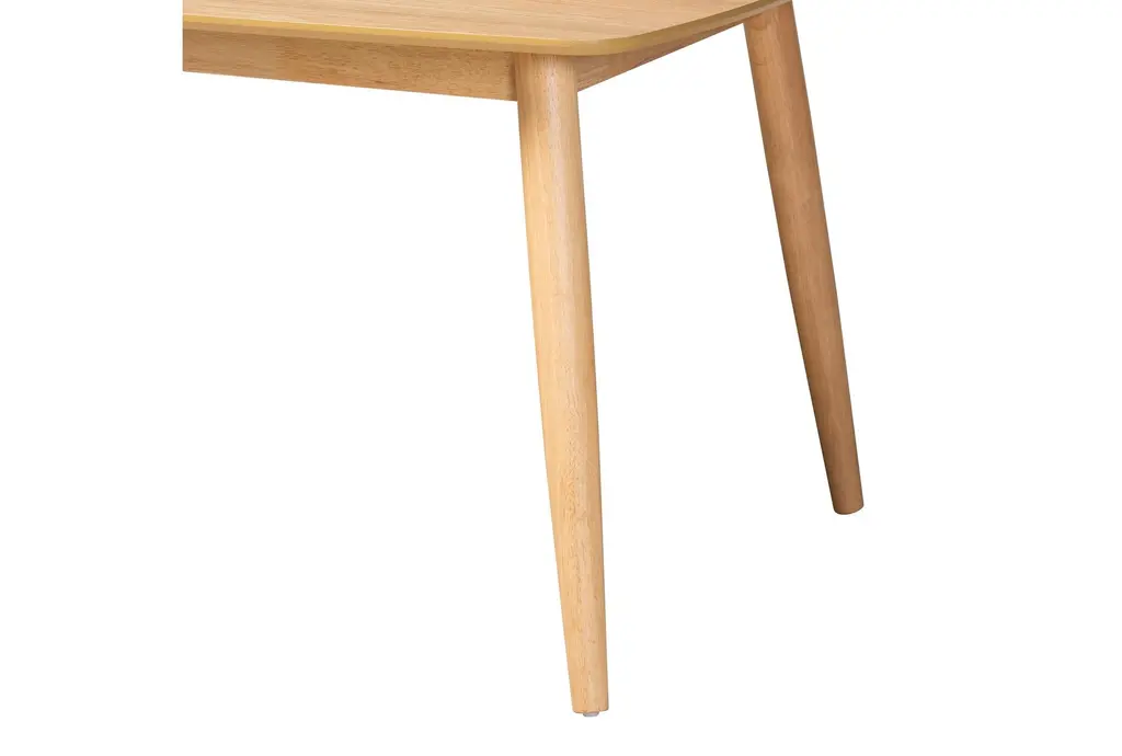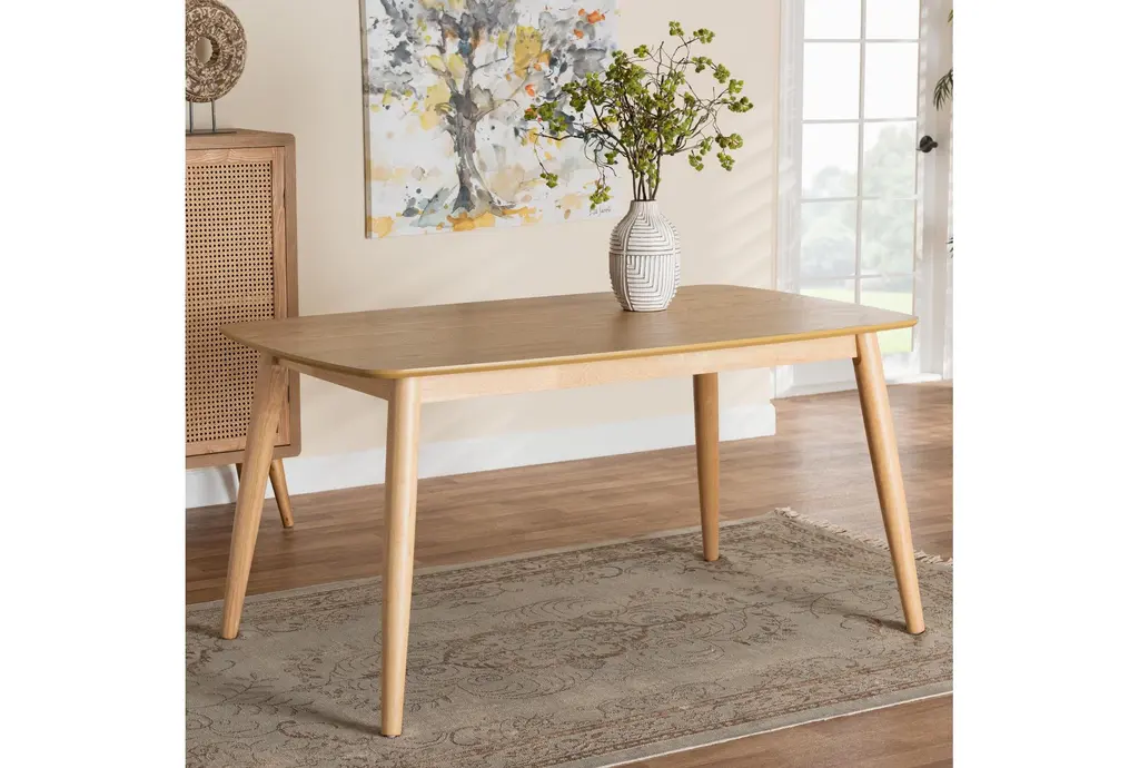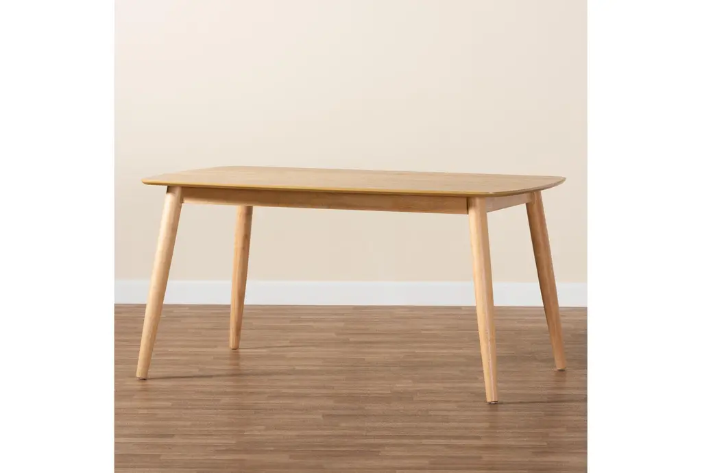 Bring a touch of mid-century modern style to your dining room with the Flora Mid-Century Modern Natural Oak Wood 59" Dining Table. This beautifully designed table features a natural oak finish that adds warmth and charm to any space. Its rectangular shape and tapered legs create a timeless look that complements a variety of decor styles.