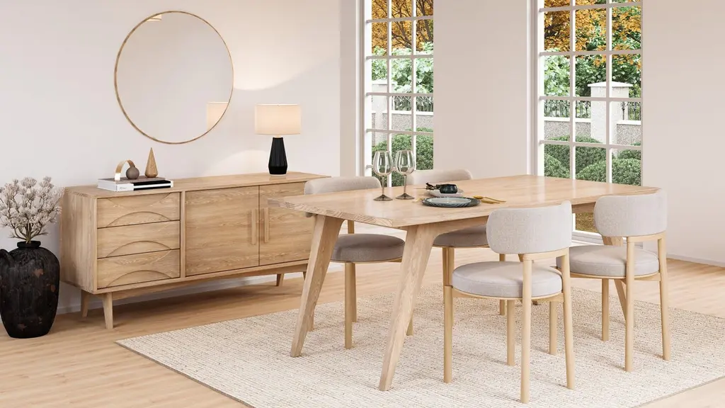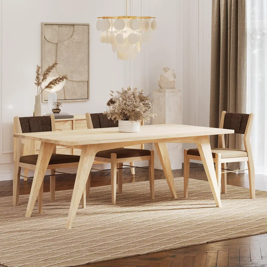 Transform your dining area with the Florence Dining Table, a harmonious blend of classic design and contemporary style. This table, crafted from premium solid hardwood, showcases clean lines and a minimalist silhouette, perfect for enhancing any modern decor.With ample space to comfortably seat six to eight people, this mid-century modern dining table is perfect for everything from cozy family dinners to festive gatherings. Its robust construction ensures stability and longevity, while the easy-to-clean surface simplifies everyday maintenance.This mid-century modern dining table brings sophistication and practicality to your dining room, creating an inviting space where you can enjoy countless meals and memories.Dimensions:Overall: 72”L x 36”D x 30”HNeed a custom size to perfectly fit your space? Contact us and let’s make it happen.