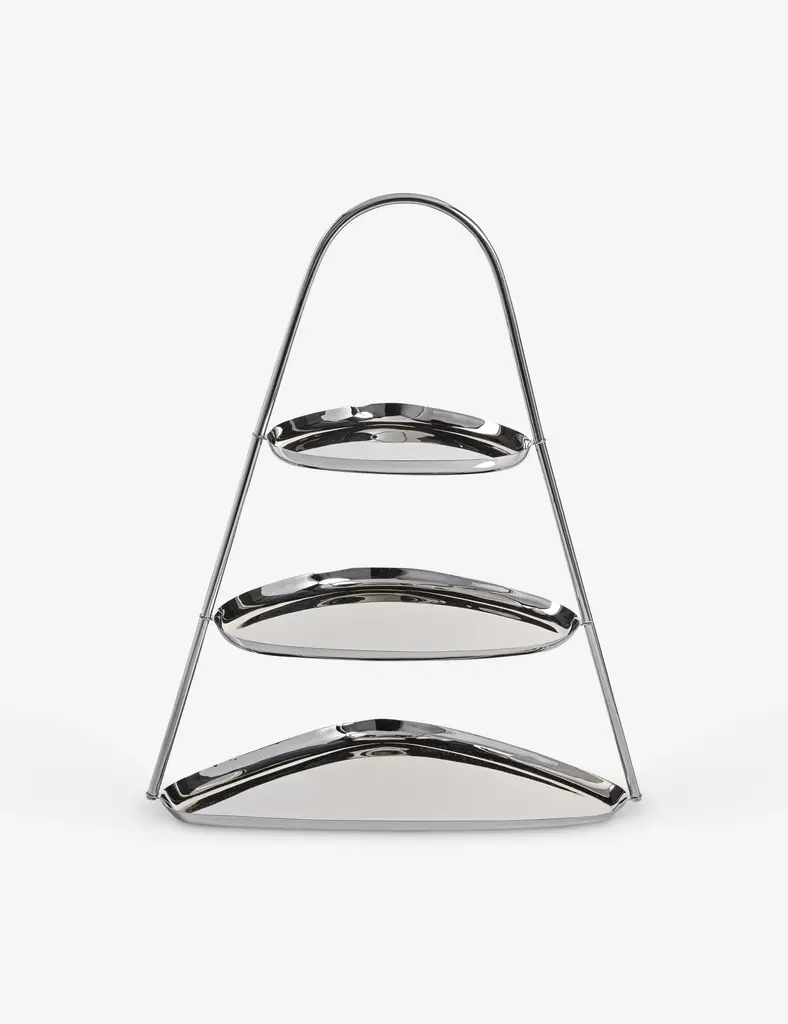 Sleek tiers of polished steel create a striking framework for sweets or hors d'oeuvres. Place it on your dining table or bar cart to bring height and elegance to a curated spread.
