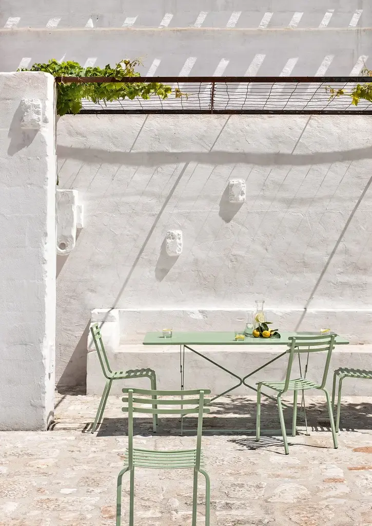 FLOWER is a rectangular folding table coloured metal, 160x80 cm.A design concept which has become a true icon of Ethimo production and open–air living in general. FLOWER, a complete collection of metal furniture which combines lightweight shapes with a wide range of colours.