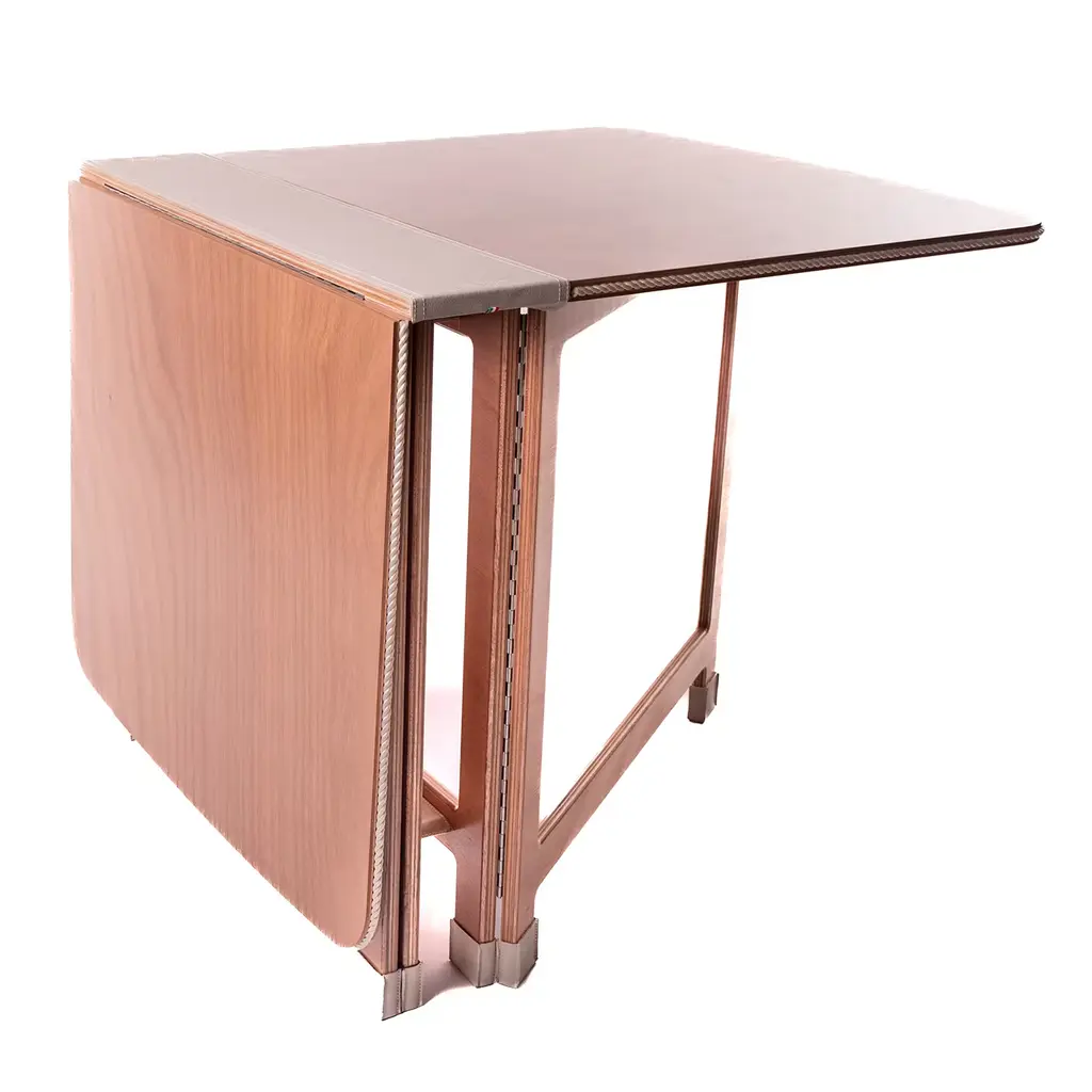 Supplied with a waterproof case that further stresses its conception for refined boat settings, this dining table was cleverly designed with a folding wooden structure that allows for quickly shifting from intimate dinners to ones with multiple guests. The rope running along the top's profile is an unmistakable clue as to its nautical inspiration.