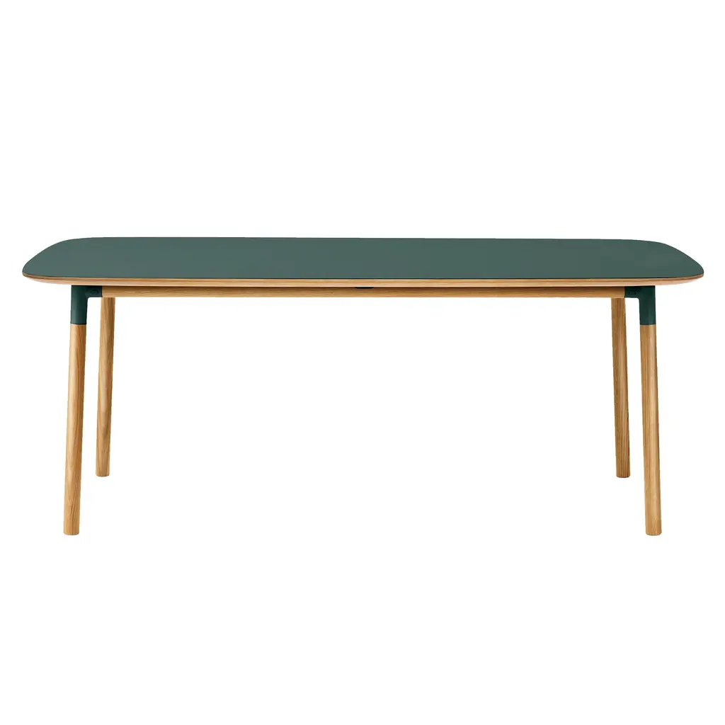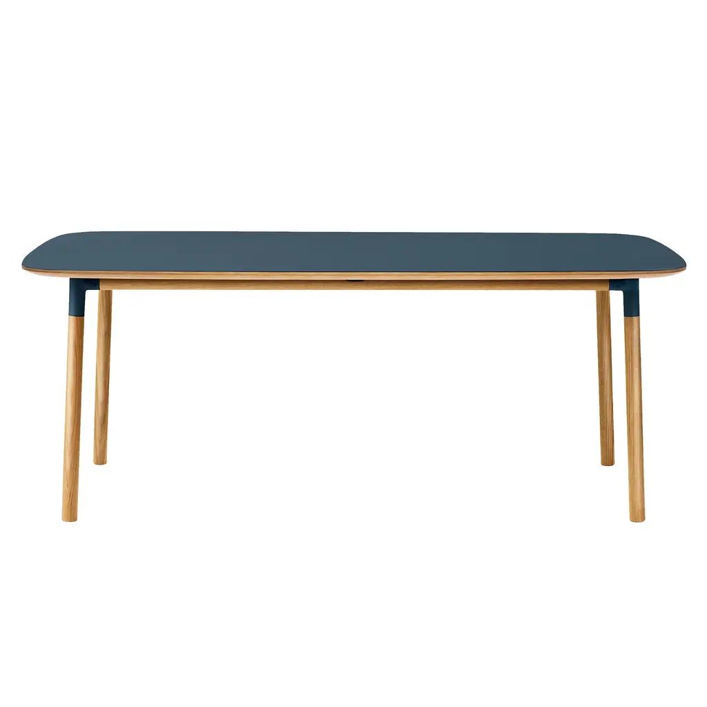 The rectangular version of Form Table offers a spacious dining option in the Danish collection’s signature pared-down style. Simon Legald’s design springs from the same uniquely cupped joints at the table legs as seen in the companion seating. Crafted in solid oak with a matte linoleum surface, the table is durable and easily maintained while its rounded edges and clean lines are a bold testament to functional simplicity at its best.