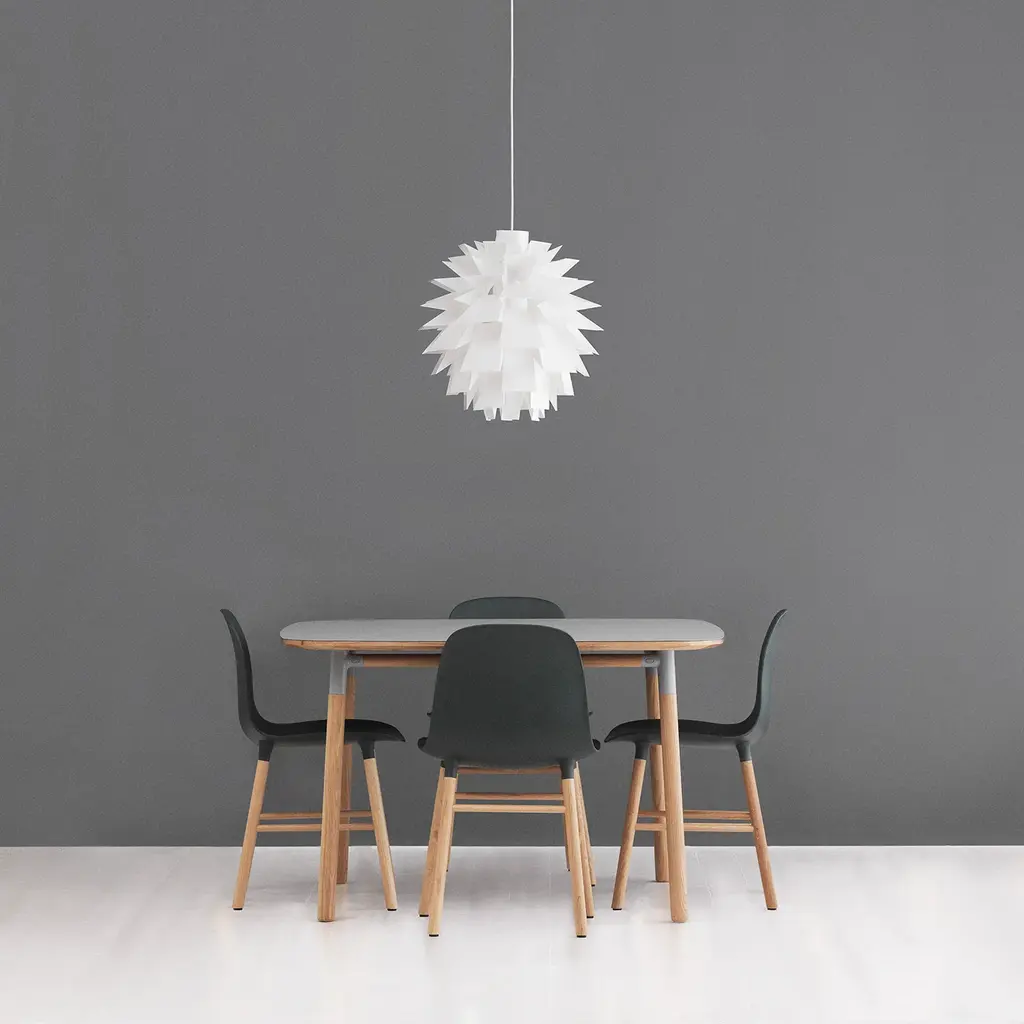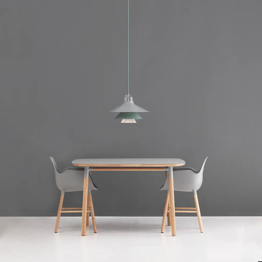 Form’s seating collection gets a striking extension with a nuanced companion dining table. Designer Simon Legald melds purity of line with a practicality of function. Fashioned in solid oak with a pleasant-to-the-touch linoleum tabletop, the lacquered wood legs are joined to the top with the same cupped joint as the original chair. The clean design and rounded edges make it a versatile addition in any setting.