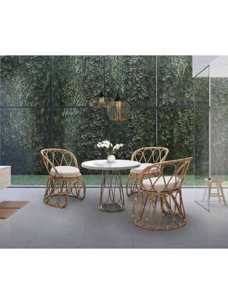 Forma dining table by Kenneth CobonpueMaterials: fiberglass, steel. Dimensions: diameter 90 cm x height 74 cm.A contemporary collection perfect for both indoor and outdoor spaces, the balanced shape of the armchair and the daybed makes them ideal to recline in. Designed by Federica Capitani, the thin steel frame is dressed with three different diameter threads emphasizing Forma’s modern feel.Designer's BiographyKenneth Cobonpue is a multi-awarded furniture designer and manufacturer from Cebu, Philippines. His passage to design began in 1987, studying Industrial Design at the Pratt Institute in New York. While completing his studies, he apprenticed for a leather and wood workshop near Florence, Italy. He went on to study Furniture Marketing and Production at the Export-Akademie Baden-Württemberg in Reutlingen, Germany, under a private and state scholarship program, and subsequently worked in Bielefeld and Munich.Kenneth returned home to Cebu in 1996 to manage Interior Crafts of the Islands, Inc., a furniture design and manufacturing company founded by his mother Betty Cobonpue in 1972. Discovering that modern design could have a new face using natural fibers and materials, Kenneth created pieces of functional art, offering an alternative to the Western definition of modern design. Today, the Kennethcobonpue brand has become known globally for its unique designs and extensive roster of clientele, including Hollywood celebrities and members of royalty.With his masterful way of integrating nature, traditional craft and innovative technologies, designer and creative director Kenneth Cobonpue has earned international awards and recognition for his creative, organic, and expressive pieces. Working closely with some of the world’s leading designers, from household names to emerging talents, Kenneth has been pushing the envelope for design in the Philippines and sharing his vision to a global audience. Awards to his credit include five Japan Good Design Awards, the grand prize at Singapore International Design Competition, the Design for Asia Award of Hong Kong, the American Society of Interior Design Top Pick selection and the French Coup de Coeur award. Several of his designs were selected for several editions of the International Design Yearbook published in London and New York. Phaidon’s book entitled “& FORK” underscores Kenneth’s position as a leader of a new movement incorporating new technologies with crafts. In 2007, TIME magazine called him “rattan’s first virtuoso”. Kenneth was named the Designer of the Year in the first edition of Maison et Objet Asia held in March 2014 in Singapore.Kenneth reveals new work each year in the design shows from Milan to New York, and he speaks regularly about Southeast Asian design all over the world. He has also appeared in European television and in countless international magazines and newspapers around the world. Various Cobonpue designs have also appeared in full-length feature films and television, such as Oceans 13 and CSI.