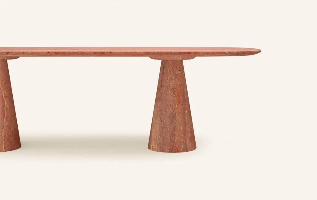 Form(la) Cono Oval Dining Table 108”l X 48”w X 30”h Travertino Rosso Vc
