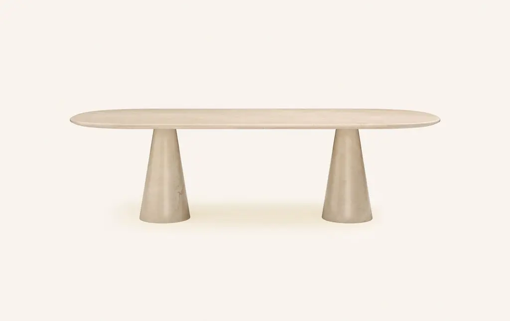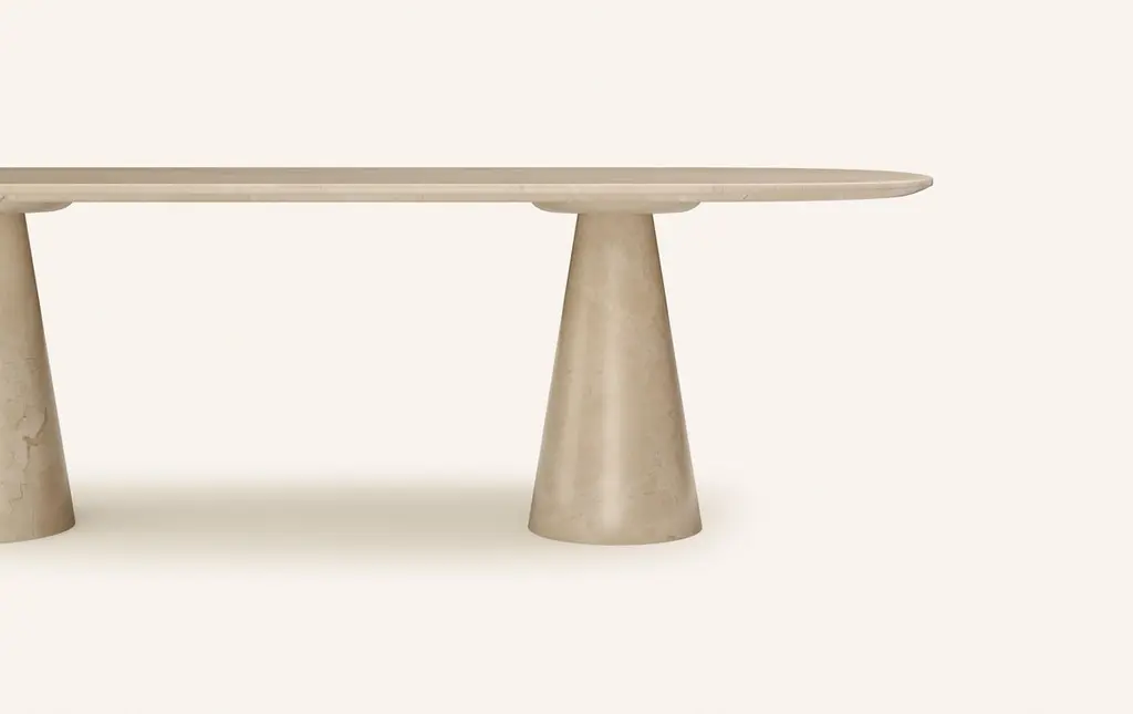 Form(la) Cono Oval Dining Table 118”l X 48”w X 30”h Crema Marfil Marble