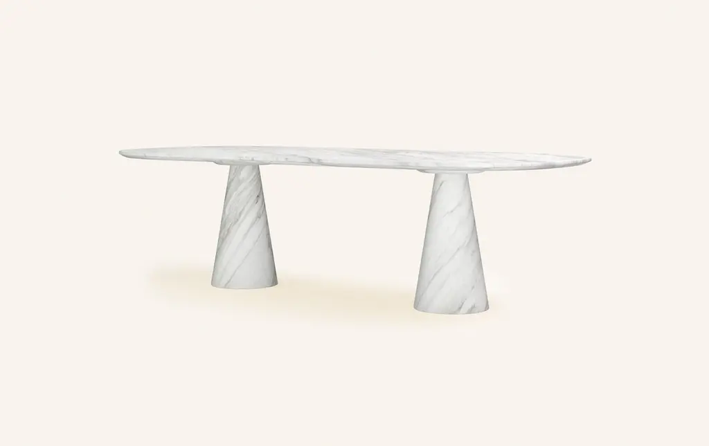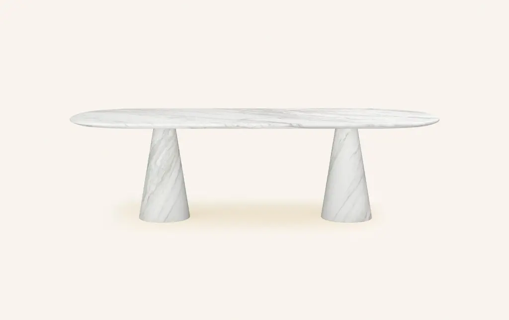 Form(la) Cono Oval Dining Table 118”l X 48”w X 30”h Volakas White Marble