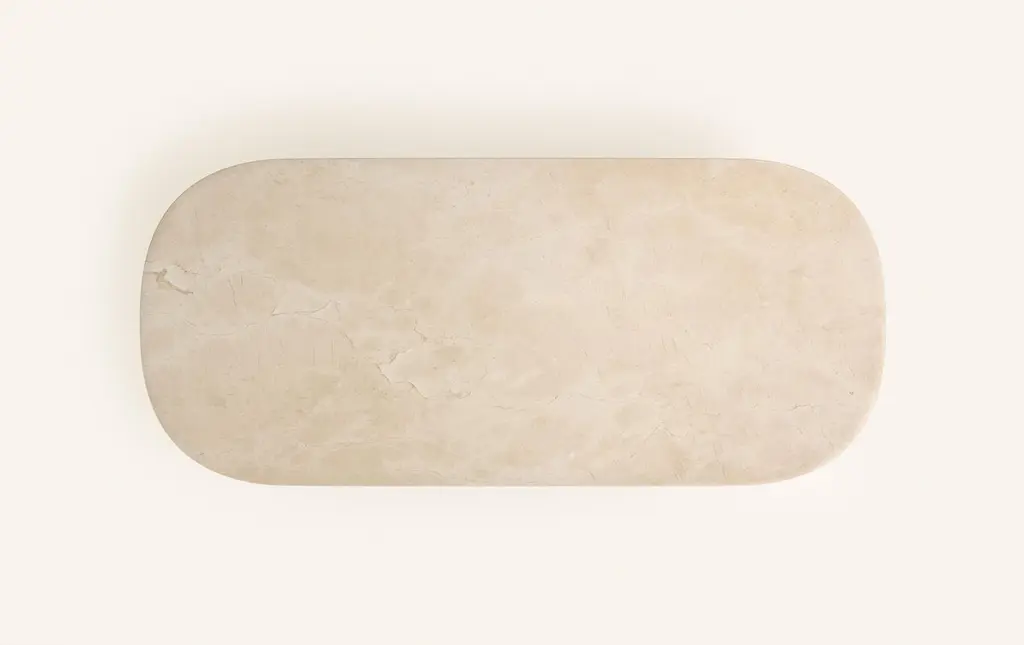 Form(la) Cono Oval Dining Table 96”l X 42”w X 30”h Crema Marfil Marble