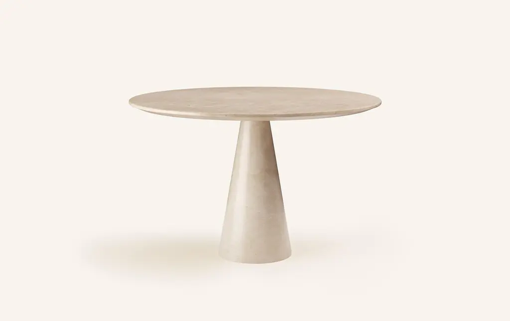 Form(la) Cono Round Dining Table 60”l X 60"w X 30”h Crema Marfil Marble