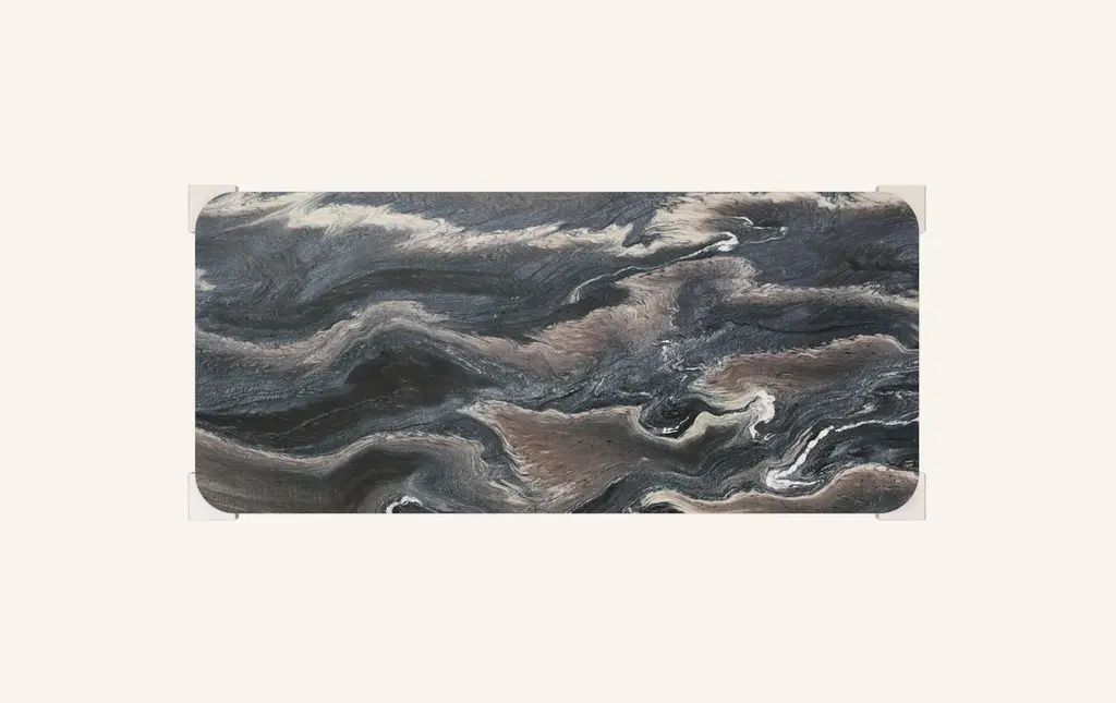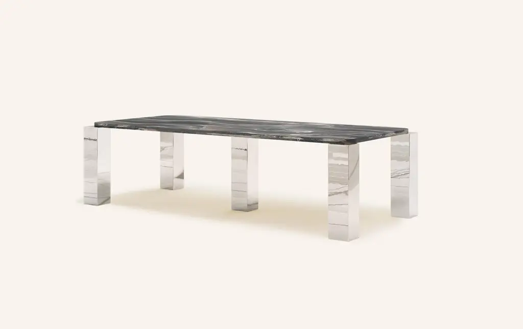 MONOLITHIC FORMS SOFTENED BY GENTLE EDGES. WITH ITS BOLD MARBLE PATTERNS CUBO IS AS VERSATILE AS IT IS STRIKING.DIMENSIONS:110”L x 50”W x 30”H: - 108”L x 48”W x 1.5” THICK TABLETOP WITH WITH 6" RADIUS CORNERS - 7”L x 7”W LEGS- TOP 1" OFFSET FROM LEGS - 2” CUTOUT(S) ON UNDERSIDE OF TABLE TOPCONSTRUCTION:TABLE TOP: - 3/4”x 2 SLABS WITH EASED EDGE- HOLE(S) IN TABLE TOP INTERLOCKS WITH BASE OF TABLEBASE:- HOLLOW CONSTRUCTION USING 3/4” STONE SLAB OR 304 STAINLESS STEEL- FELT LINING TO BOTTOM OF BASE FOR FLOOR PROTECTION- STONE FINISH TO TOP OF BASE ON ALL STONE VARIANTSWEIGHT:110”L x 50”W x 30”H WITH CHROME LEGS: - GROSS WEIGHT INCLUDING WOOD CRATE 1079LBS