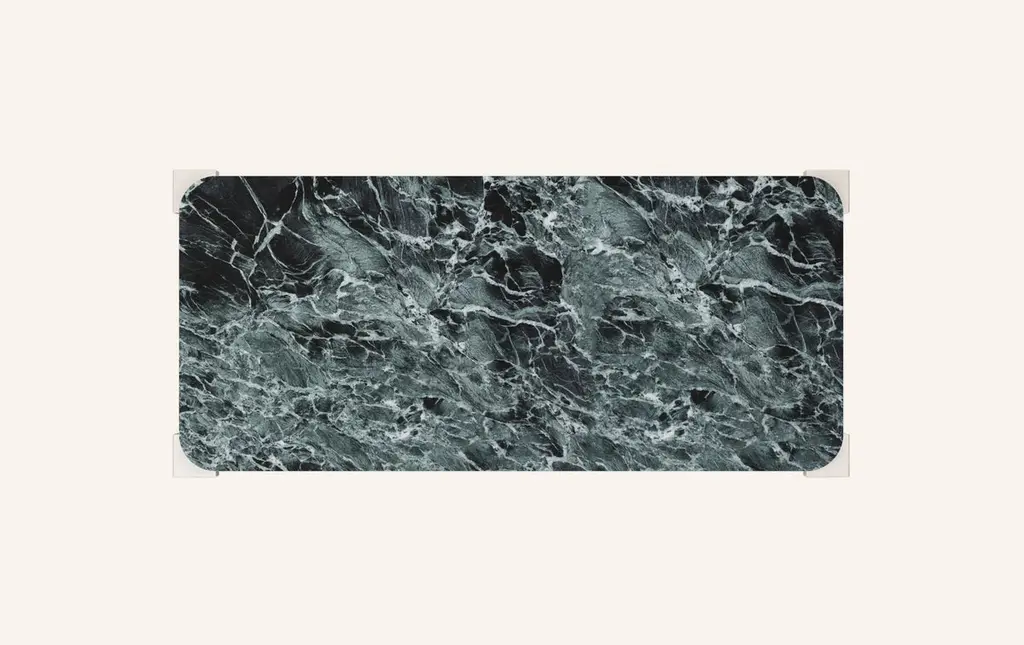 Form(la) Cubo Rectangle Dining Table 110”l X 50”w X 30”h Verde Marble & Chrome