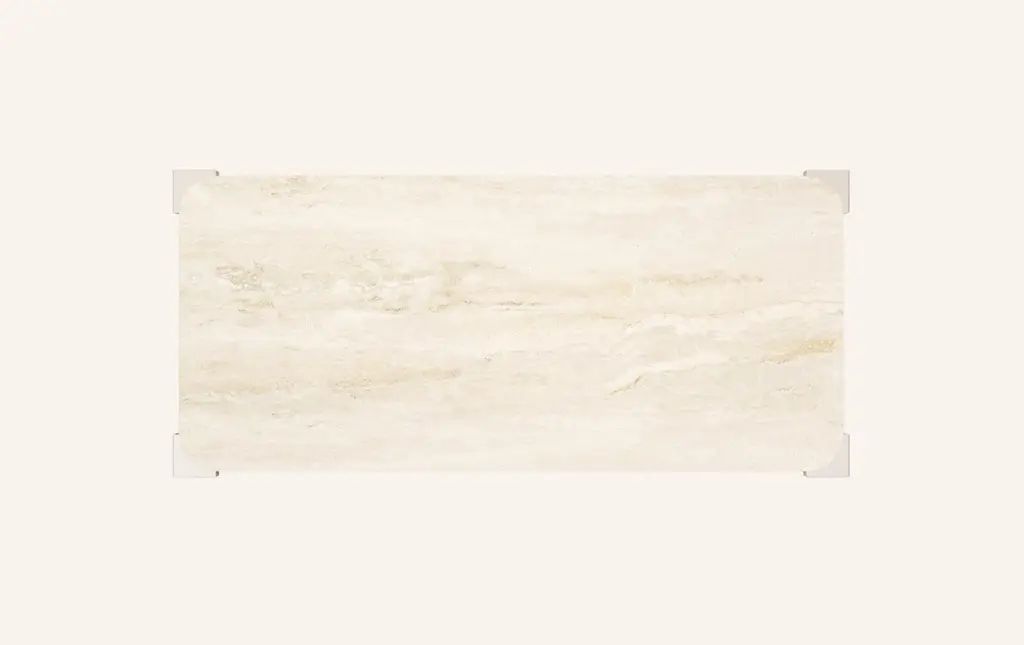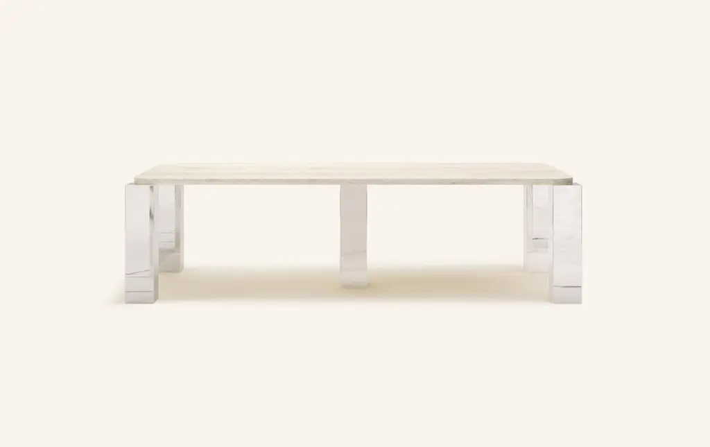 Form(la) Cubo Rectangle Dining Table 120”l X 50”w X 30”h Travertino & Chrome