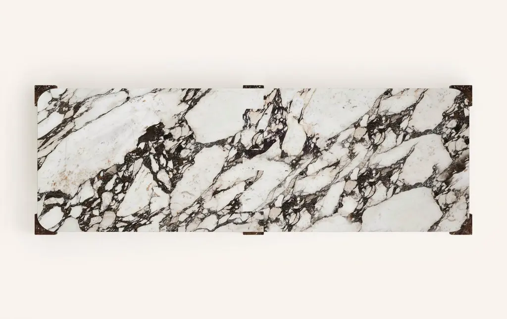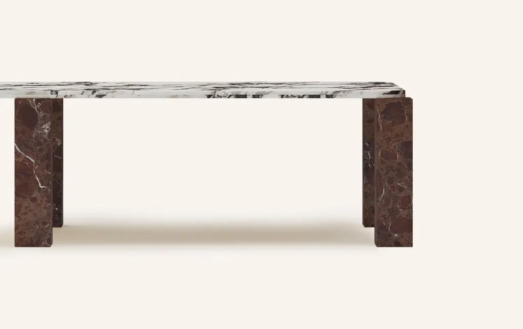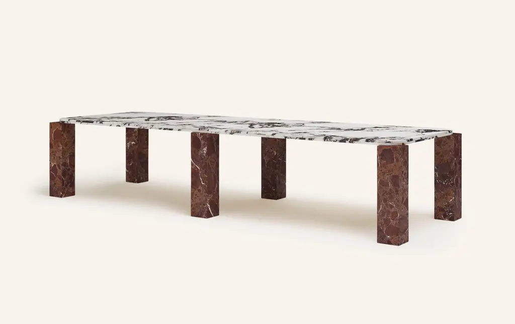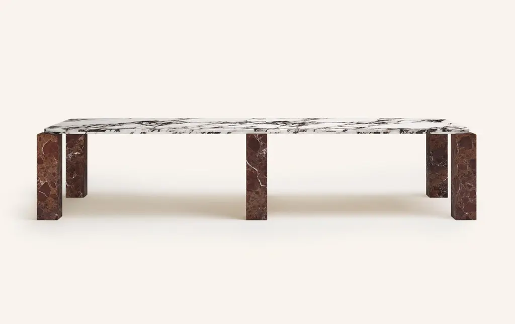 Form(la) Cubo Rectangle Dining Table 146”l X 50”w X 30”h Viola & Rosso Marble