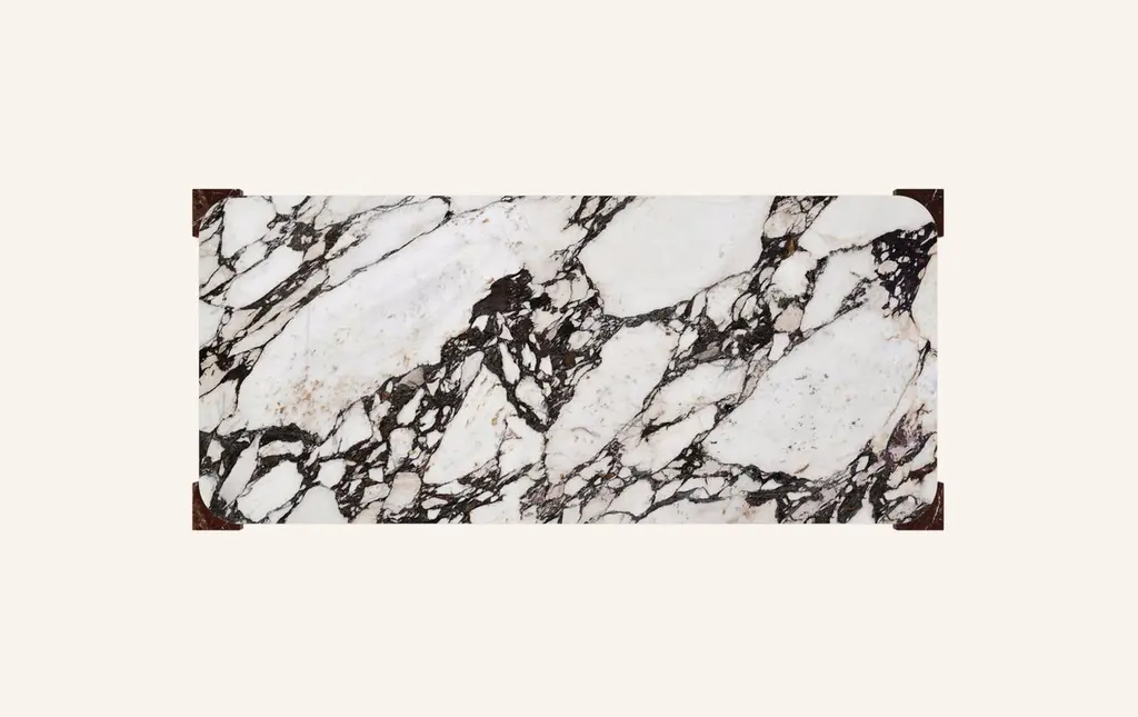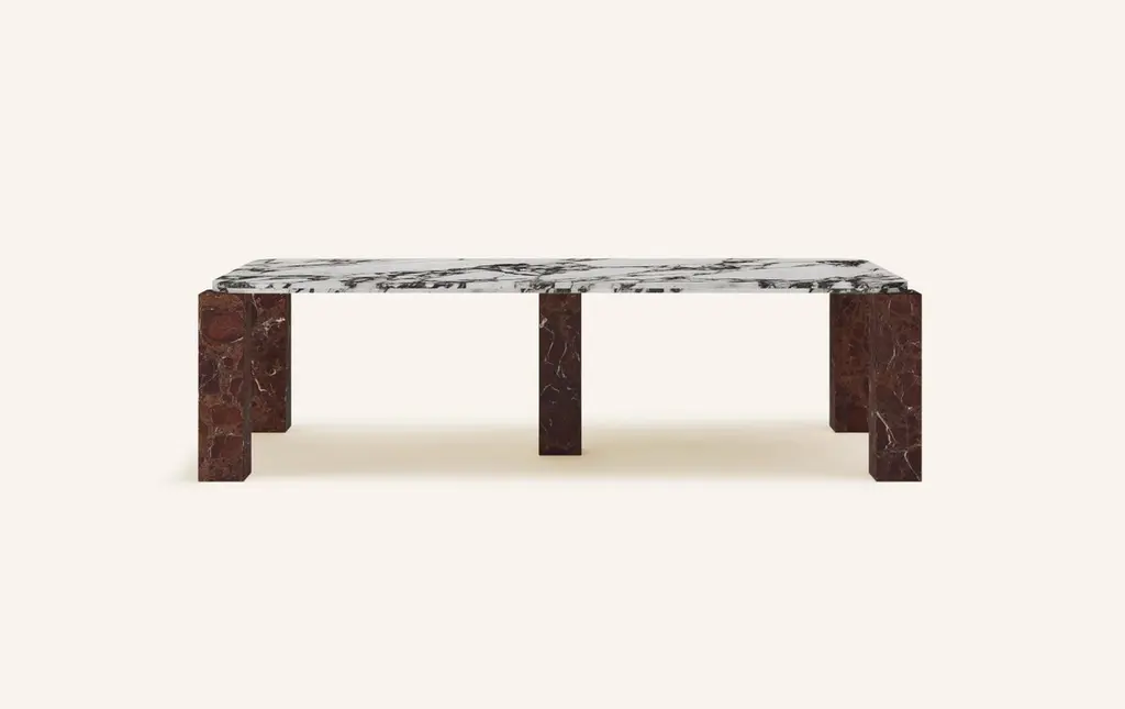 Form(la) Cubo Rectangle Dining Table 86”l X 44”w X 30”h Viola & Rosso Marble