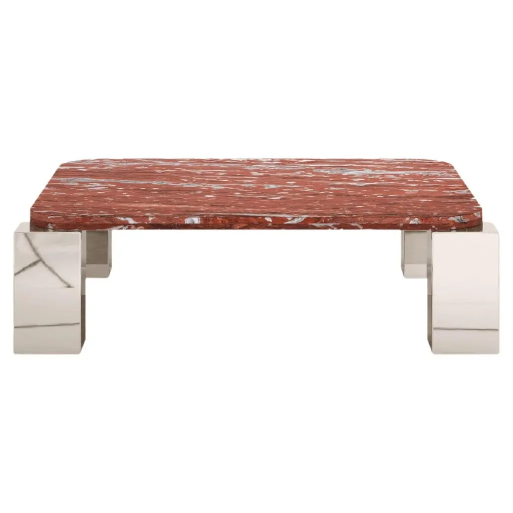 MONOLITHIC FORMS SOFTENED BY GENTLE EDGES. WITH ITS BOLD MARBLE PATTERNS CUBO IS AS VERSATILE AS IT IS STRIKING.DIMENSIONS:98”L x 44”W x 30”H: - 96”L x 42”W x 1.5” THICK TABLETOP WITH WITH 6" RADIUS CORNERS - 7”L x 7”W LEGS- TOP 1" OFFSET FROM LEGS - 2” CUTOUT(S) ON UNDERSIDE OF TABLE TOPCONSTRUCTION:TABLE TOP: - 3/4”x 2 SLABS WITH EASED EDGE- HOLE(S) IN TABLE TOP INTERLOCKS WITH BASE OF TABLEBASE:- HOLLOW CONSTRUCTION USING 3/4” STONE SLAB OR 304 STAINLESS STEEL- FELT LINING TO BOTTOM OF BASE FOR FLOOR PROTECTION- STONE FINISH TO TOP OF BASE ON ALL STONE VARIANTSWEIGHT:98”L x 44”W x 30”H WITH CHROME LEGS: - GROSS WEIGHT INCLUDING WOOD CRATE 890LBS