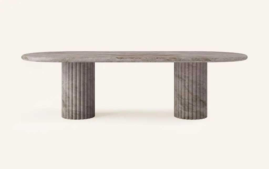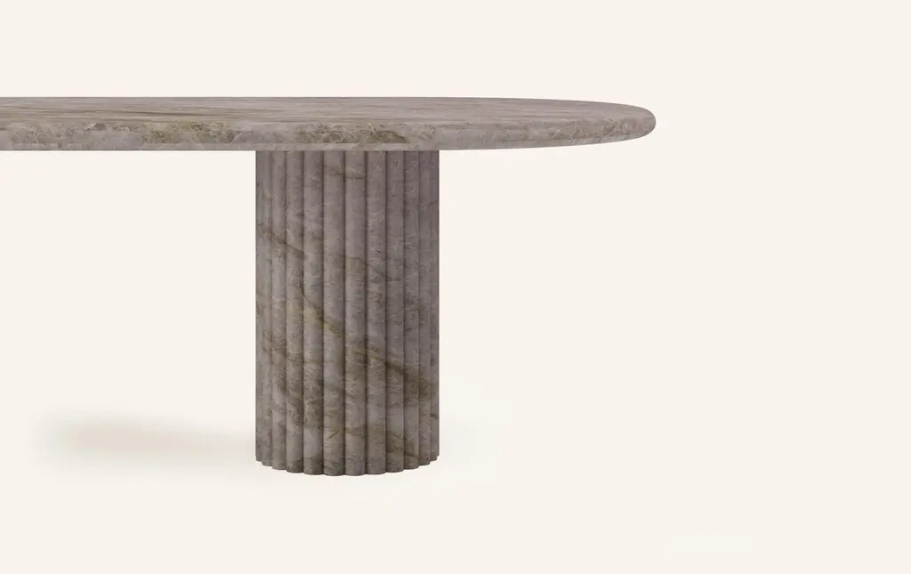 Form(la) Fluta Oval Dining Table 108”l X 48”w X 30”h Taj Mahal Quartzite
