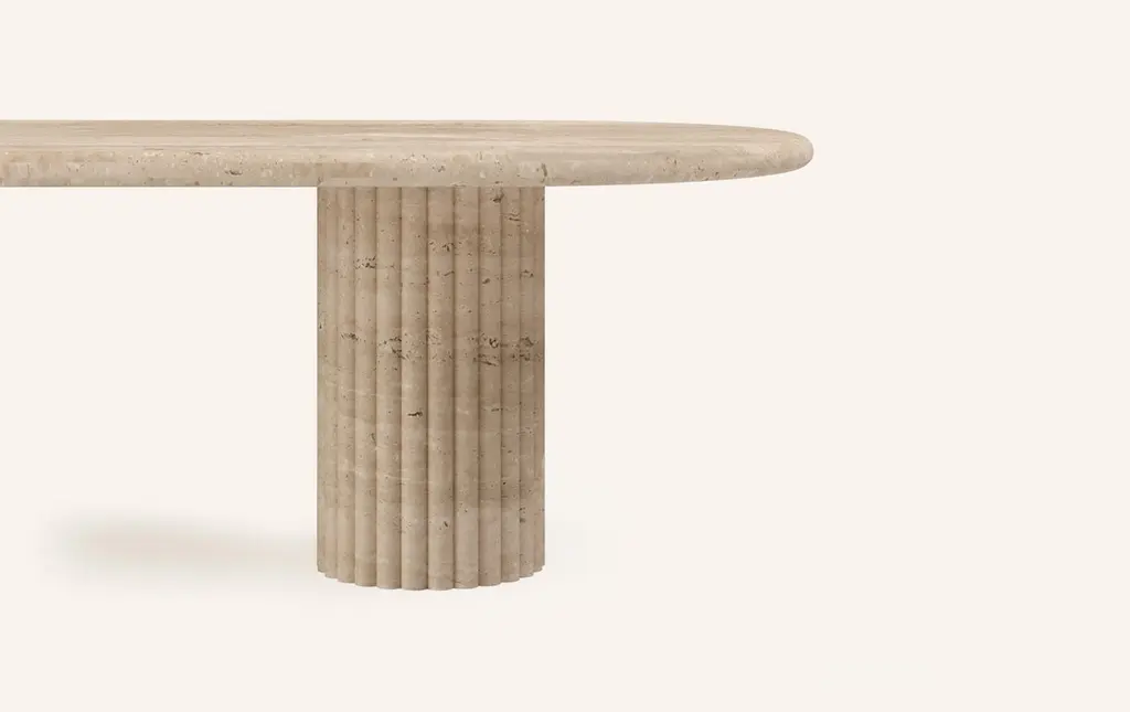Form(la) Fluta Oval Dining Table 118”l X 48”w X 30”h Travertino Crema Vc