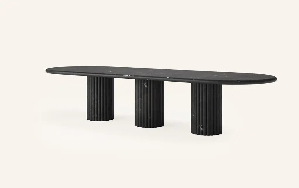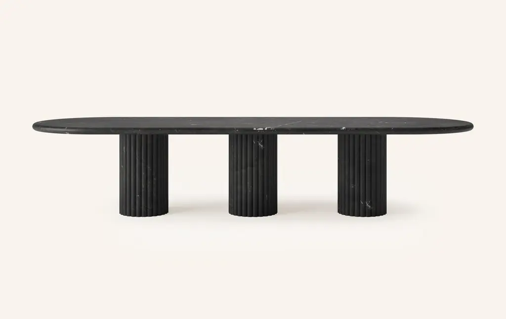 Form(la) Fluta Oval Dining Table 144”l X 48”w X 30”h Negresco Quartzite